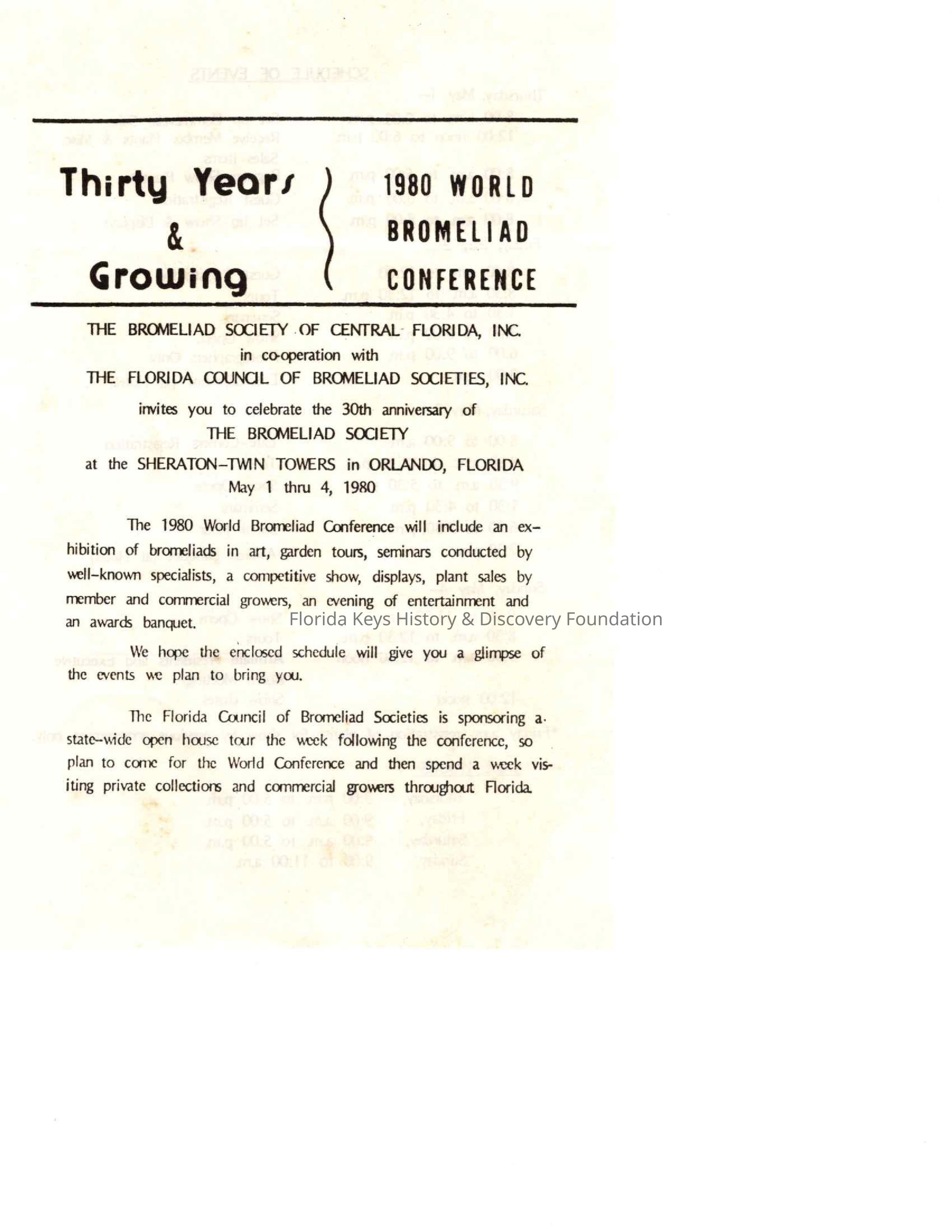 1980, 1980s, GCUK, Orlando, Bromeliad Society, Conference, ScheduleScope and Content