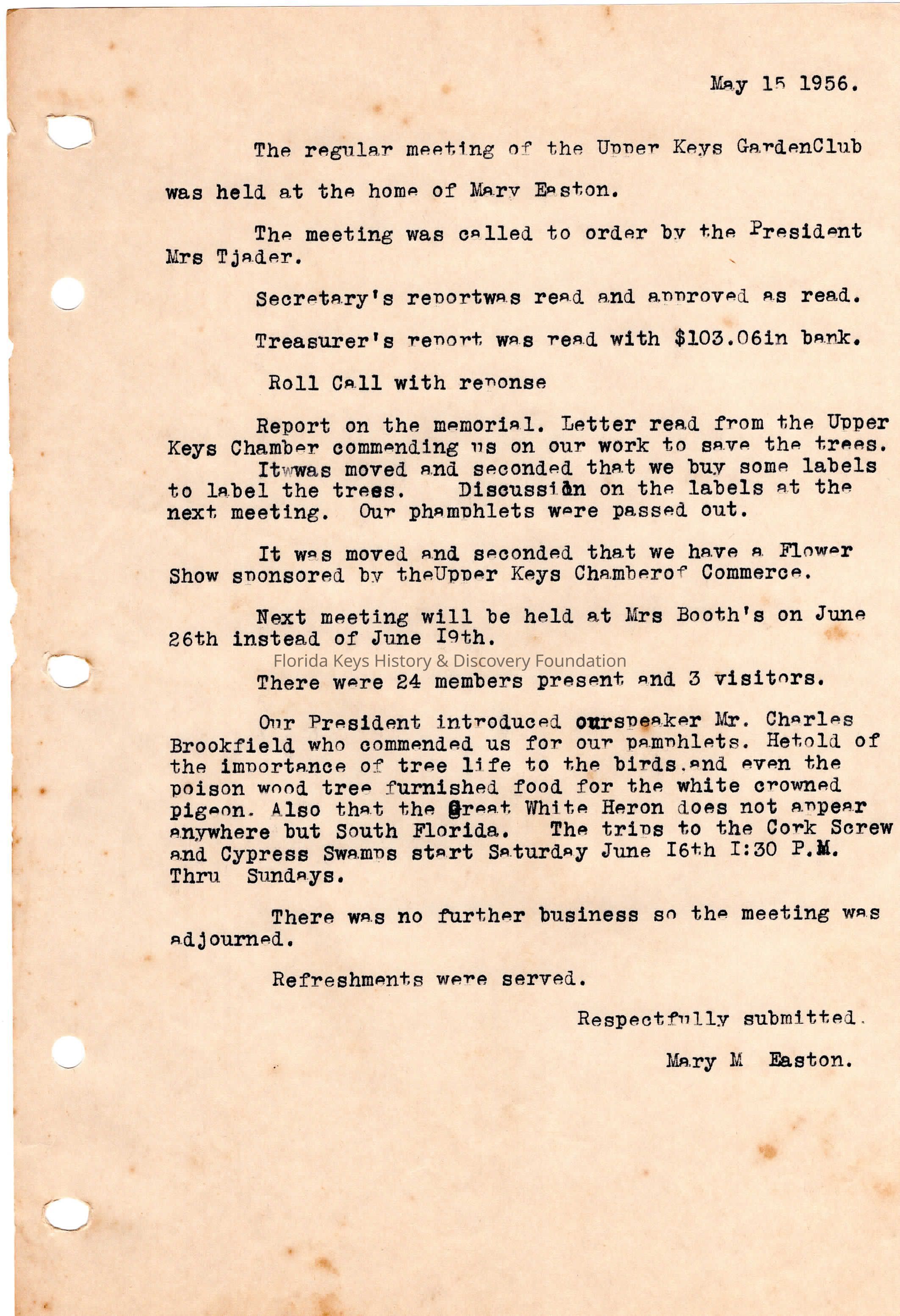 Garden Club of the Upper Keys, Mary Easton, Alida Tjader, Florence Booth, Charles BrookfieldCreated By