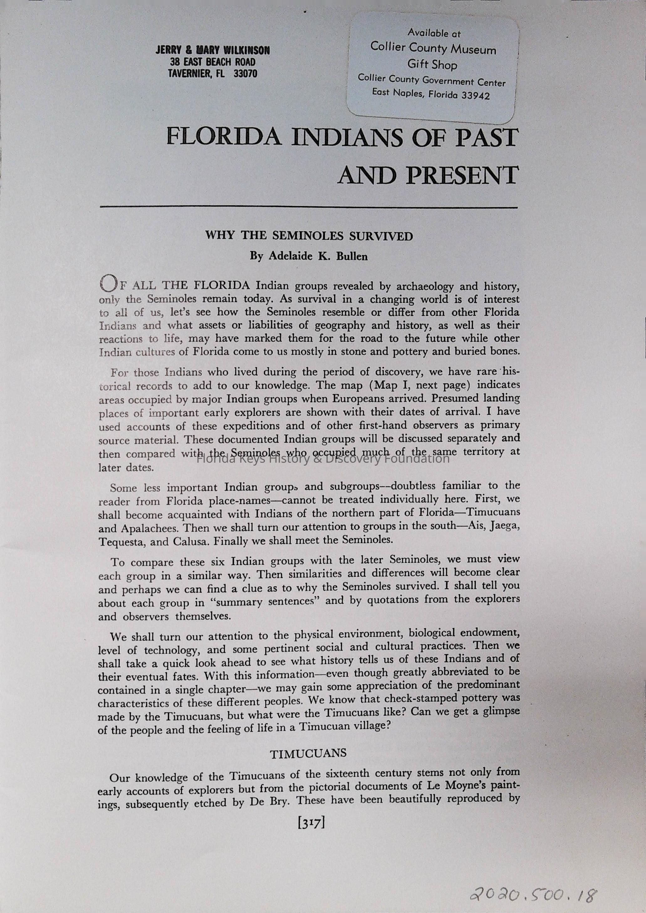 Originally published as Chapter 24, "Florida from Indian Trail to Space Age, Vol. 1"Collection