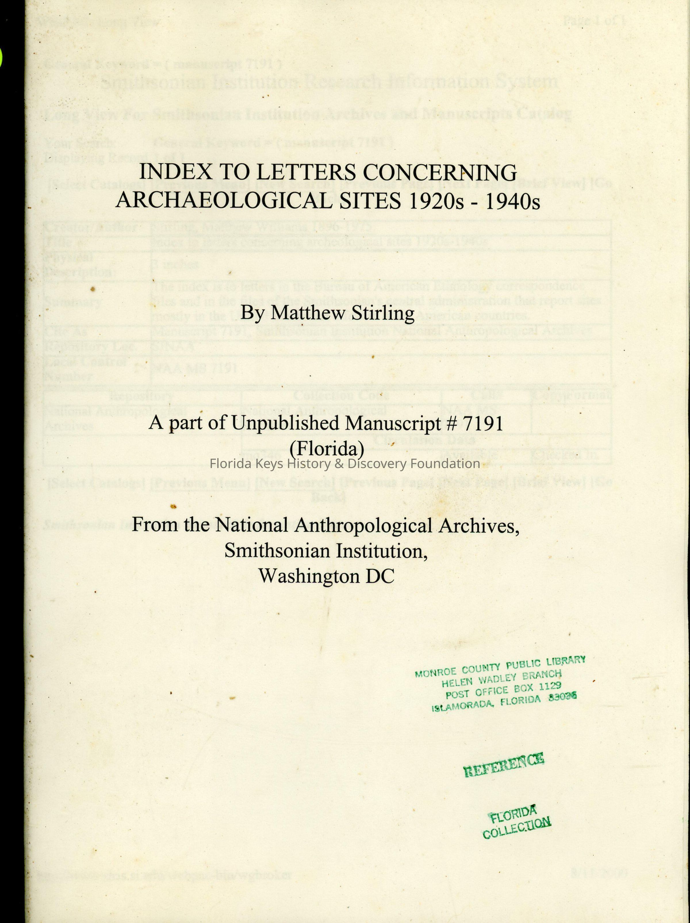 Index to Letters Concerning Archaeological Sites 1920s-1940sEntry/Object ID