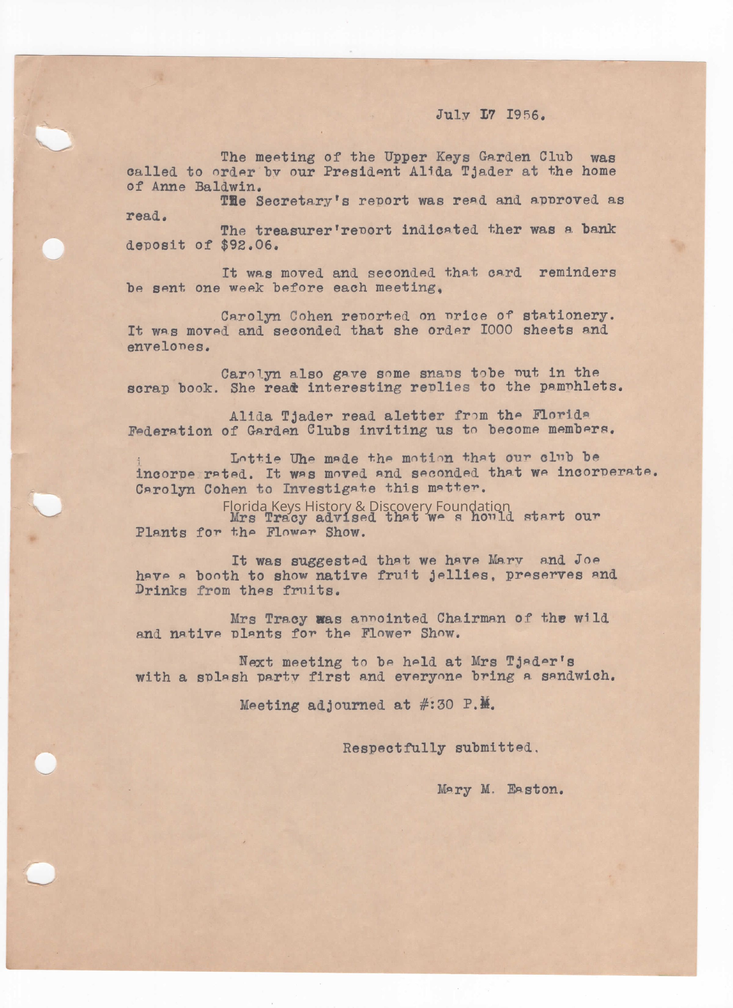 Alida Tjader, Anne Baldwin, Carolyn Cohen, Carolyn V. Cohen, Florida Federation of Garden Clubs, Frances Tracy, Mary Easton, Garden Club of the Upper KeysCreated By