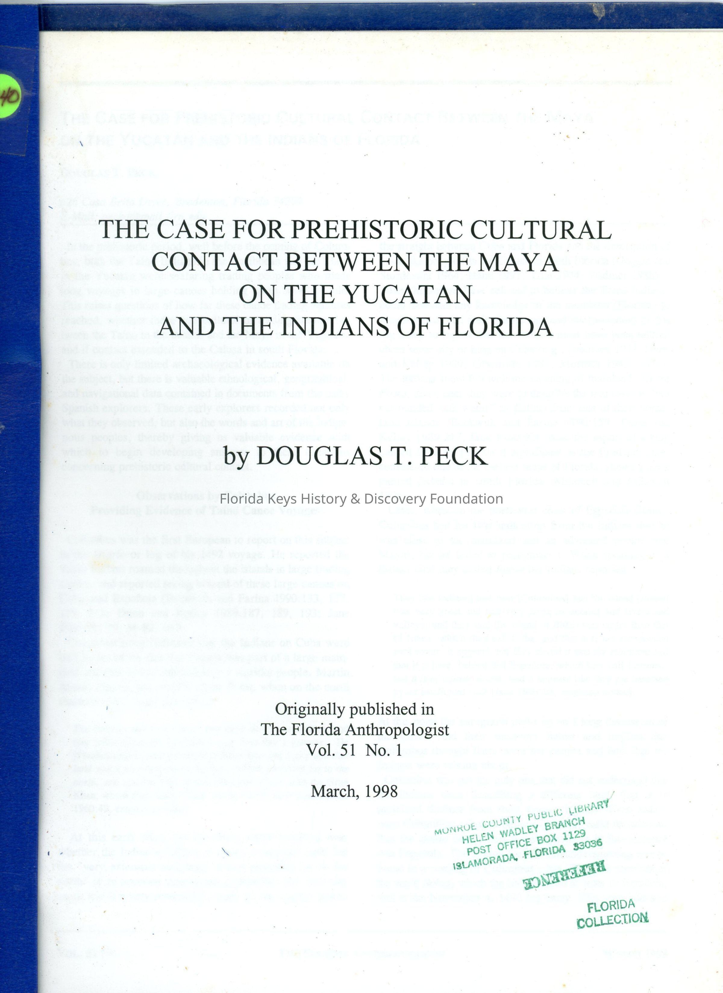 The Case for Prehistoric Cultural Contact Between the Maya on the Yucatan and the Indians of FloridaEntry/Object ID
