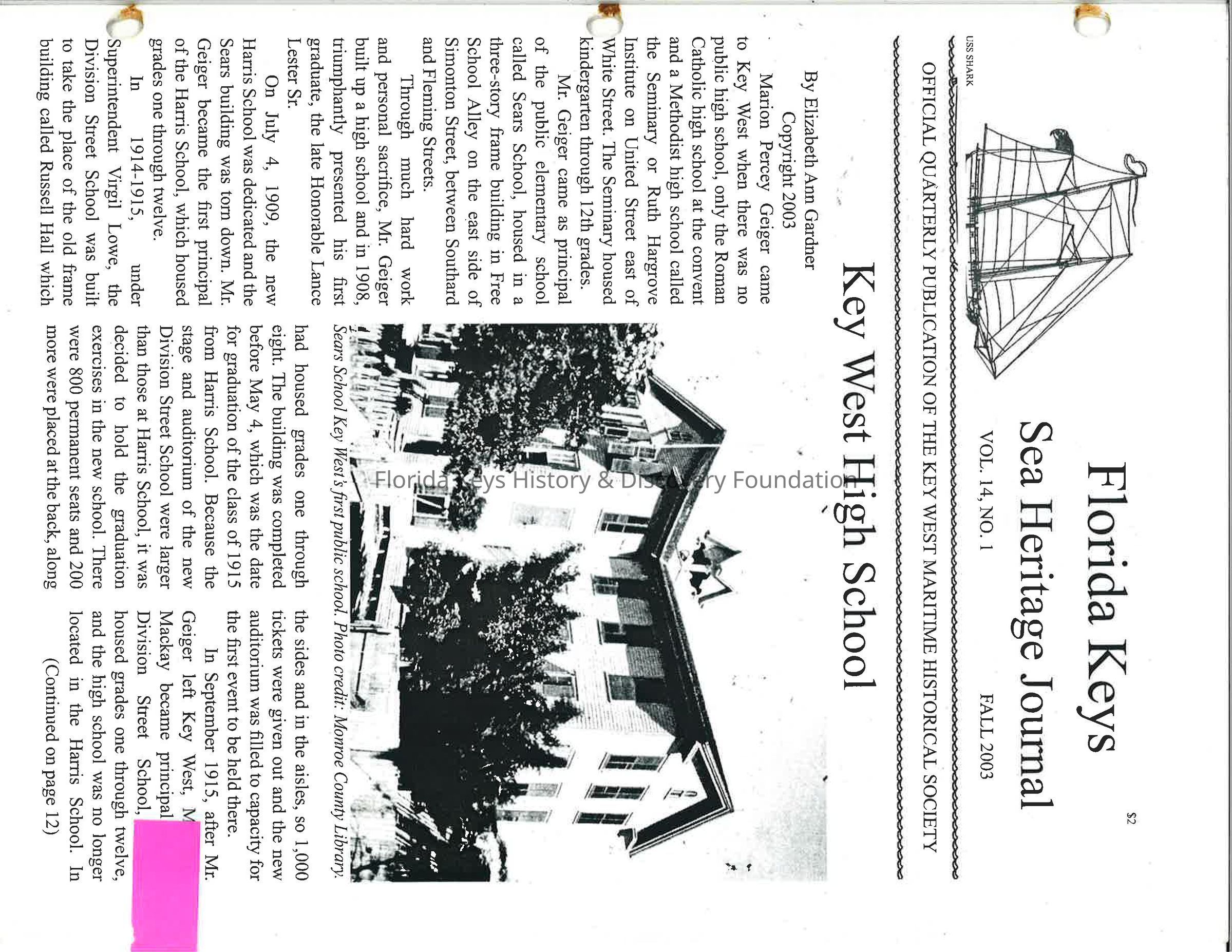 Florida Keys Sea Heritage Journal, Volume 14, Number 1, Fall 2003Description