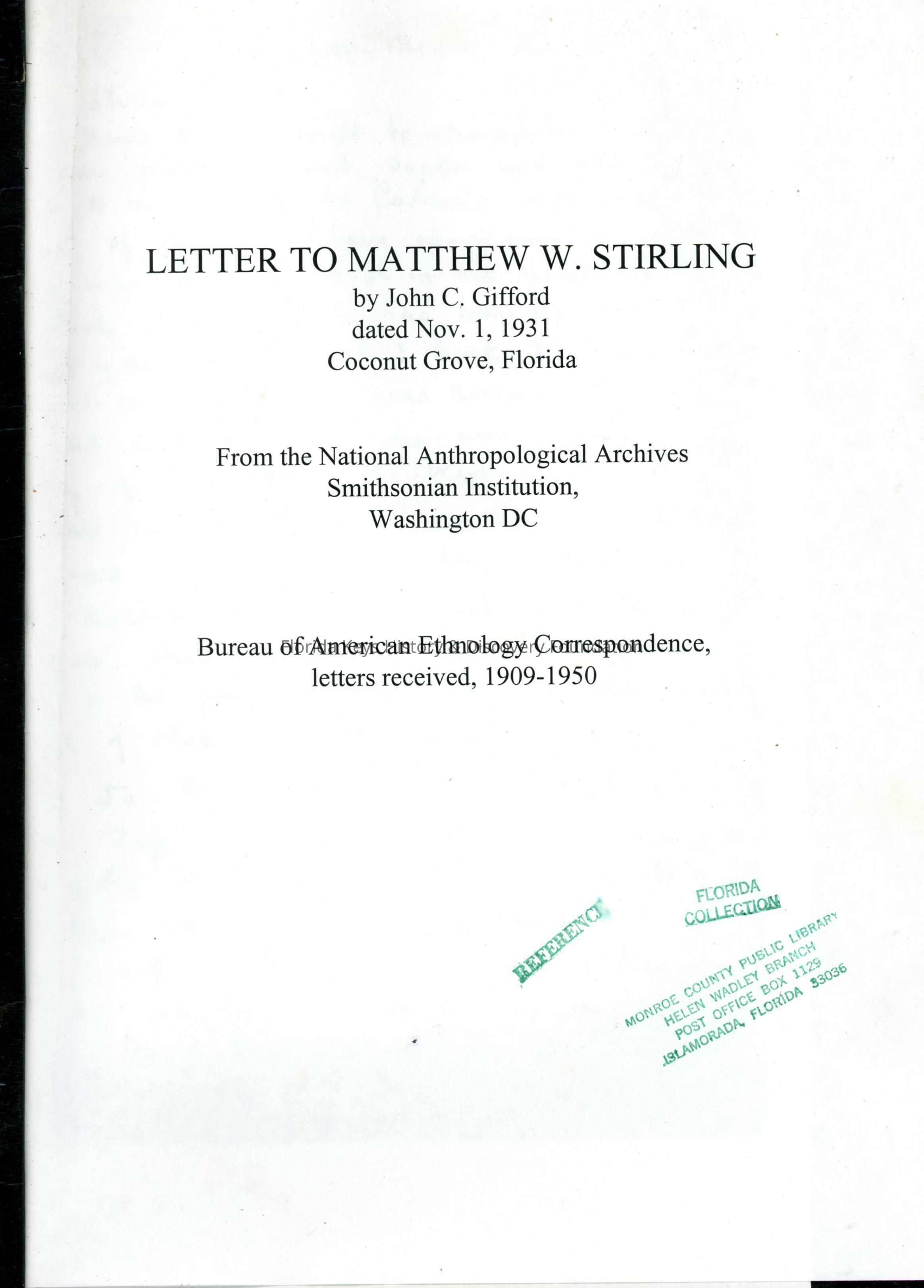 Bureau of American Ethnology Correspondence Letters Received, 1909-1950Place Printed