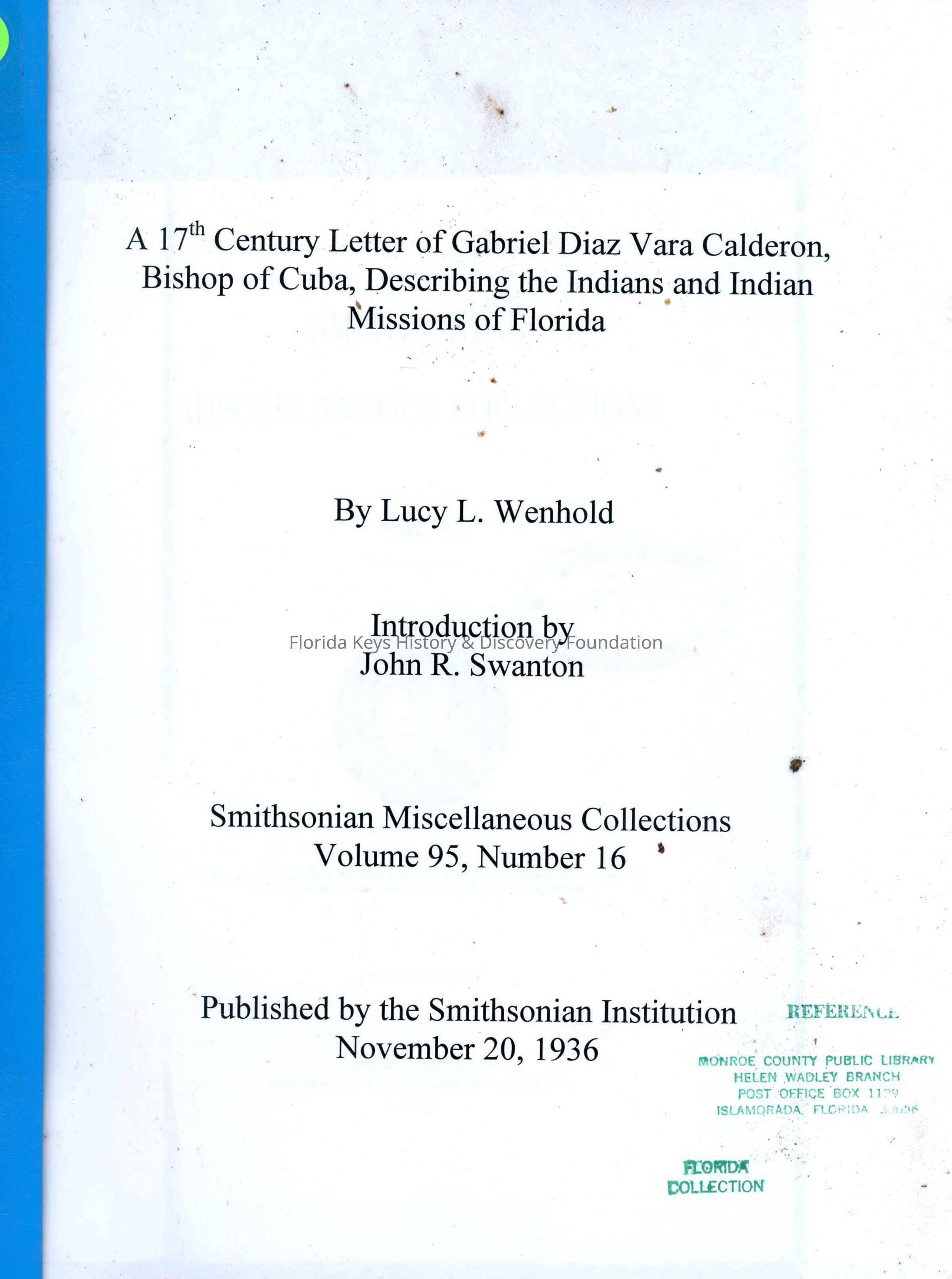 A 17th Century Letter of Gabriel Diaz Vara Calderon, Bishop of Cuba, Describing the Indians and Indian Missions of FloridaEntry/Object ID