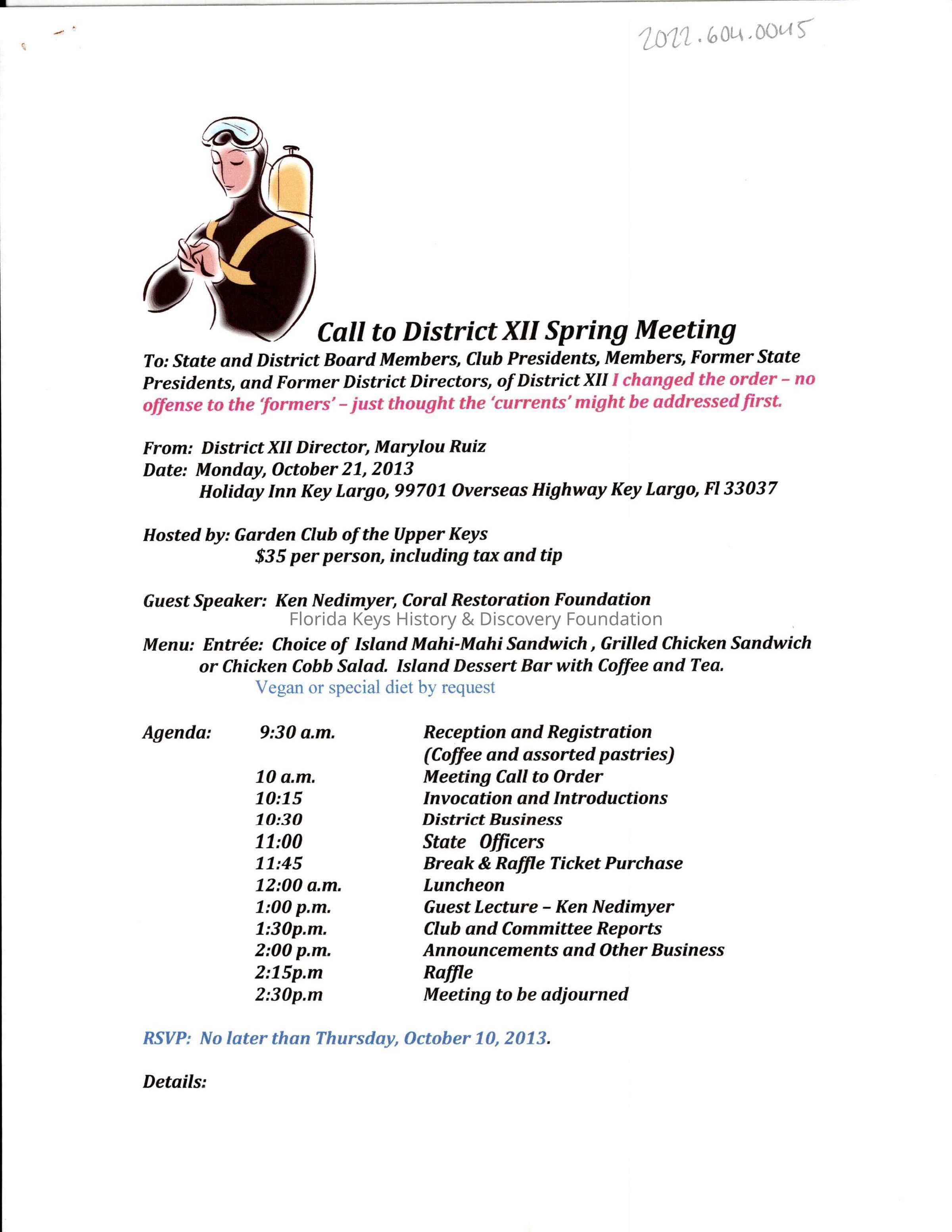 Call to District XII Spring Meeting Oct 21 2013Entry/Object ID