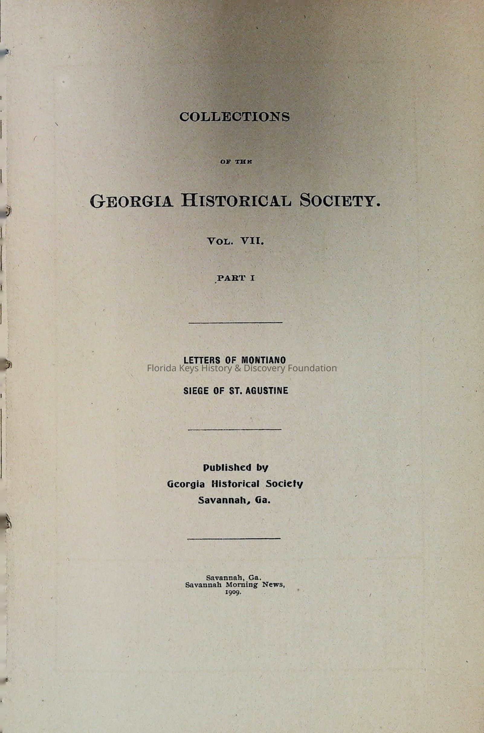 Letters of Montiano, Collections of the Georgia Historical SocietyCollection