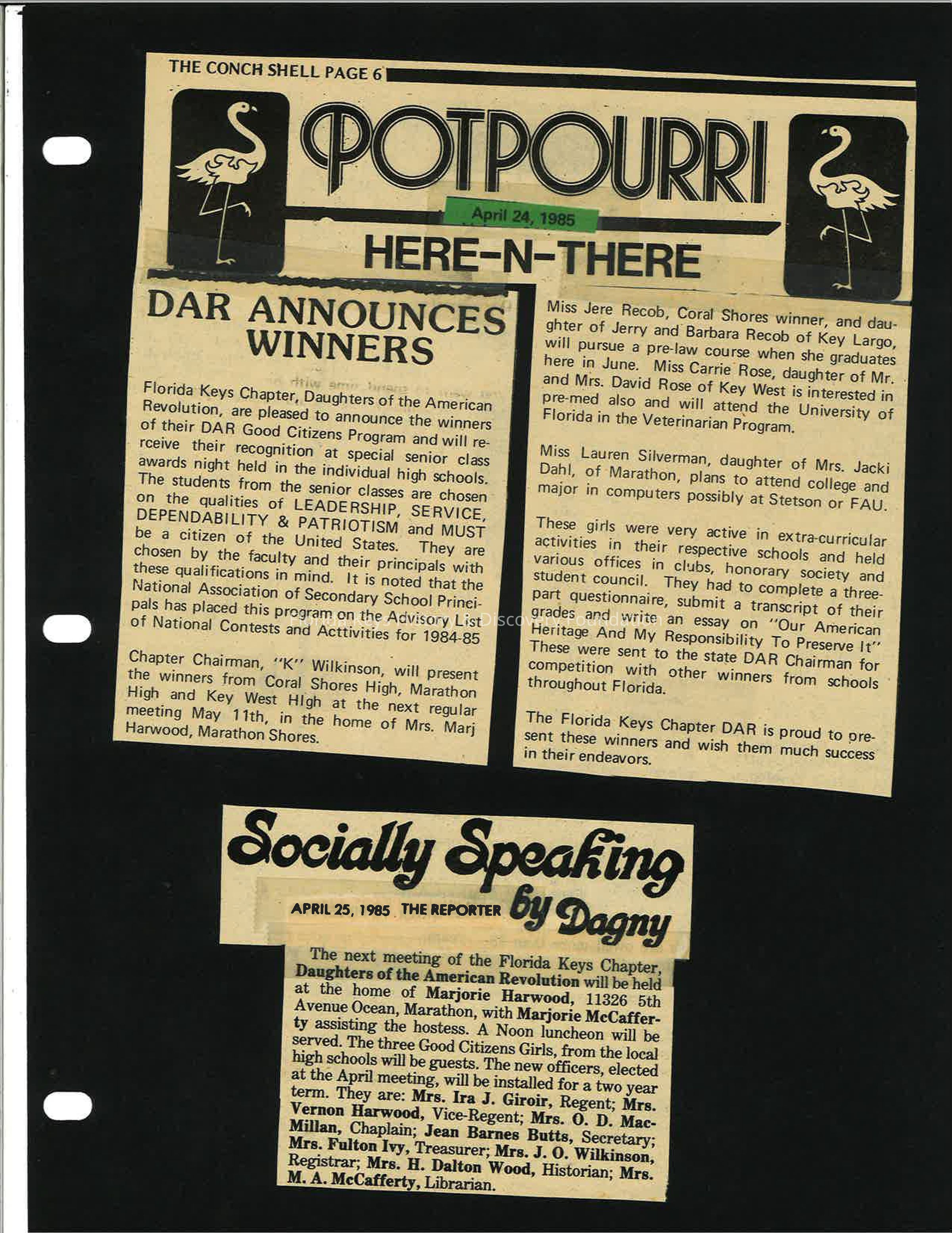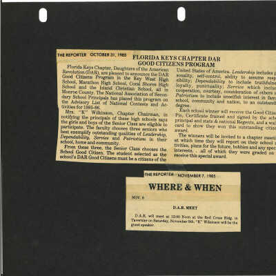 Scrapbook of newspapers - Florida Keys Chapter announces winner of DAR Good Citizen ProgramCollection
