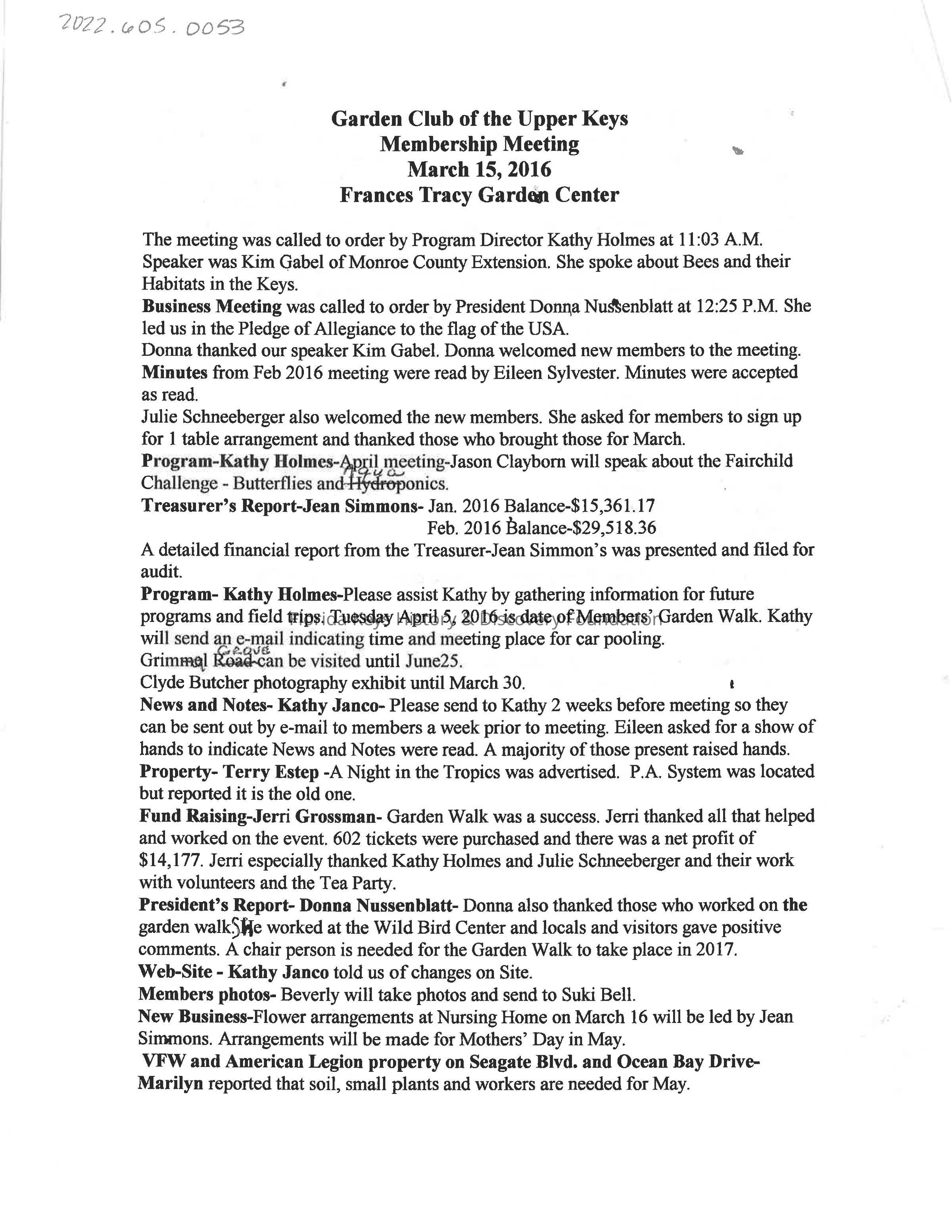 March 15, 2016 Membership Meeting MinutesEntry/Object ID