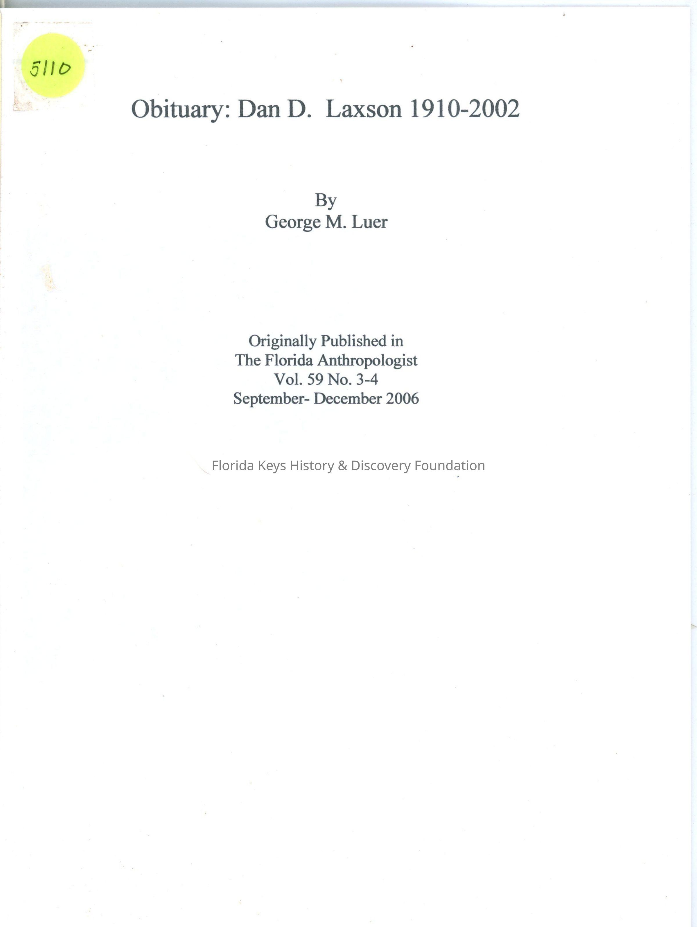 Obituary: Dan D. Laxson 1910-2002Entry/Object ID