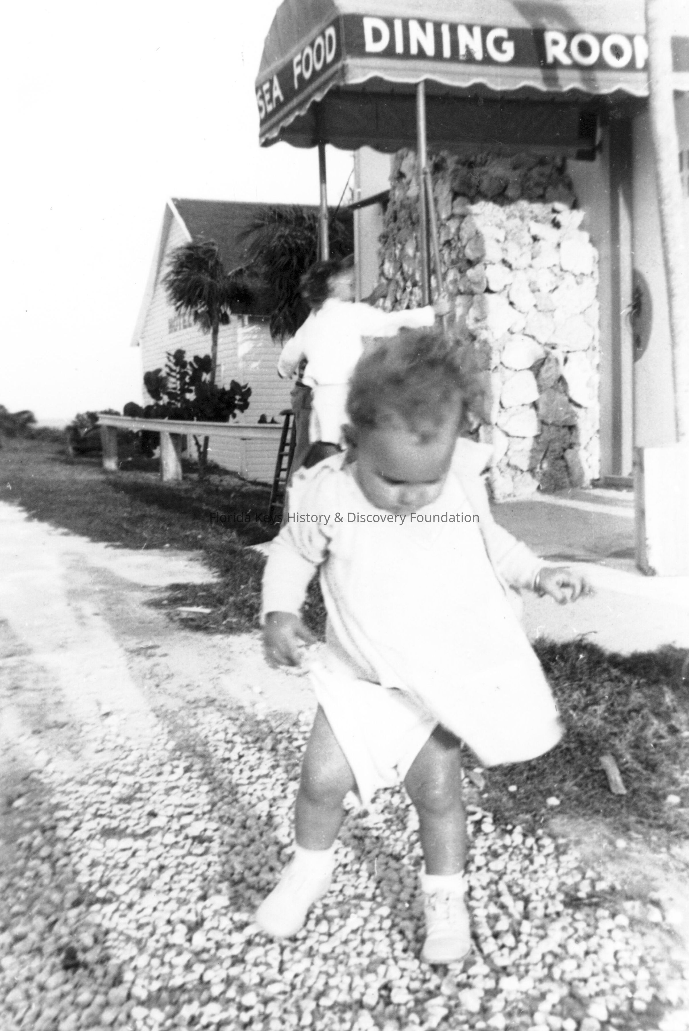 Craig's daughter Julie in front of dining room for yacht owners onlyCollection
