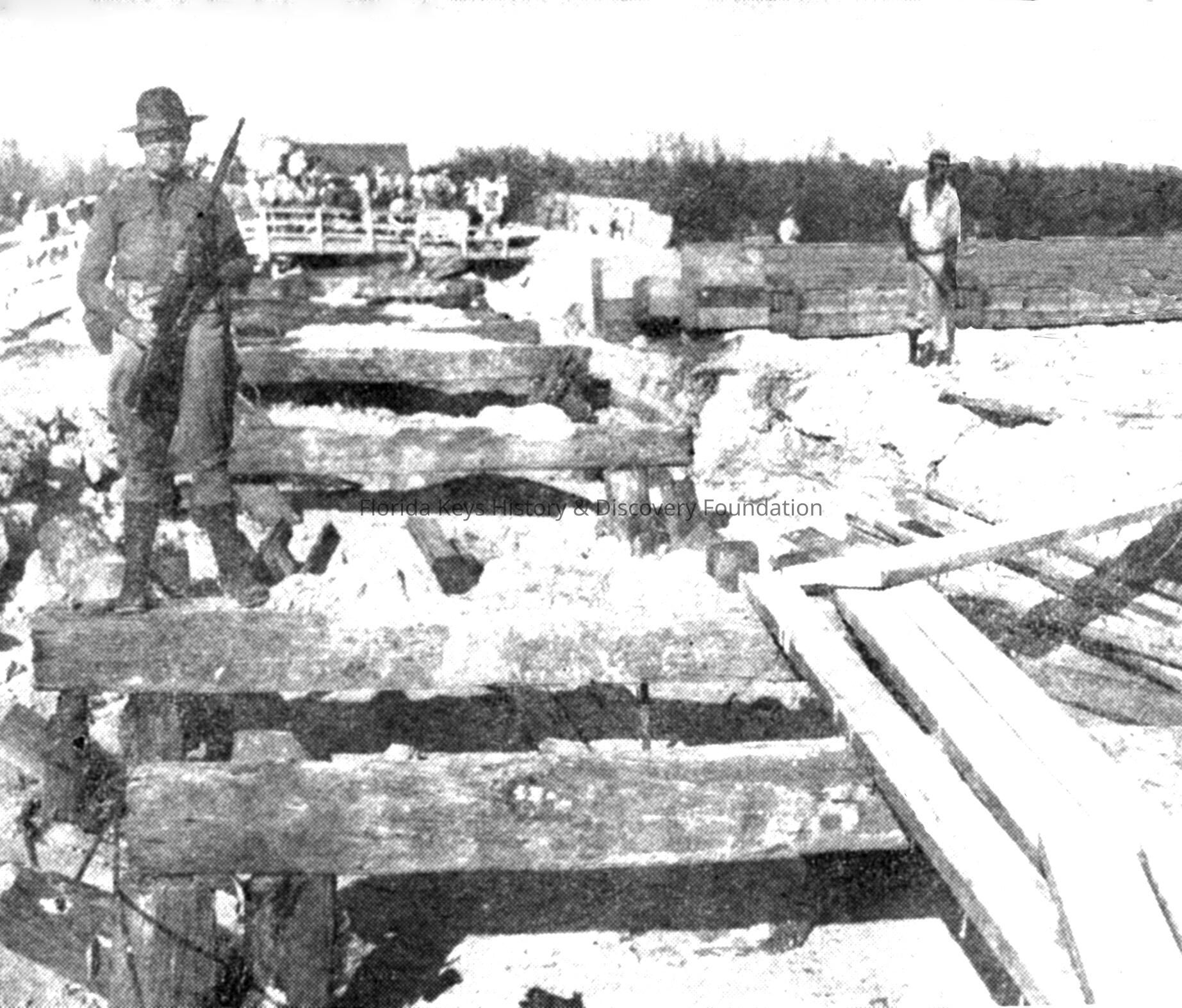 1935 Hurricane Devastation standing guard - newspaperCollection