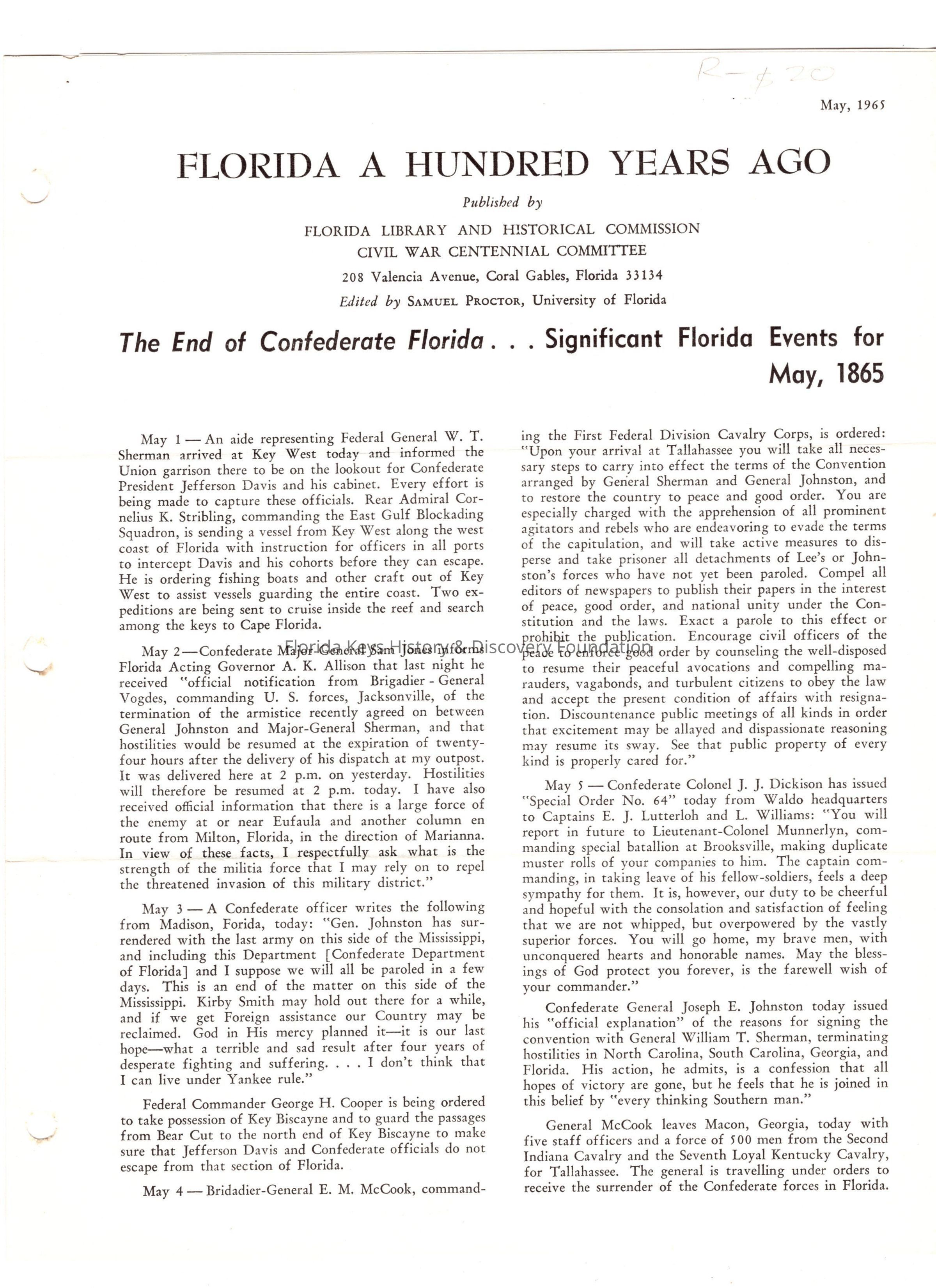 Florida Library and Historical Commision, Civil War Centennial CommitteePlace Published