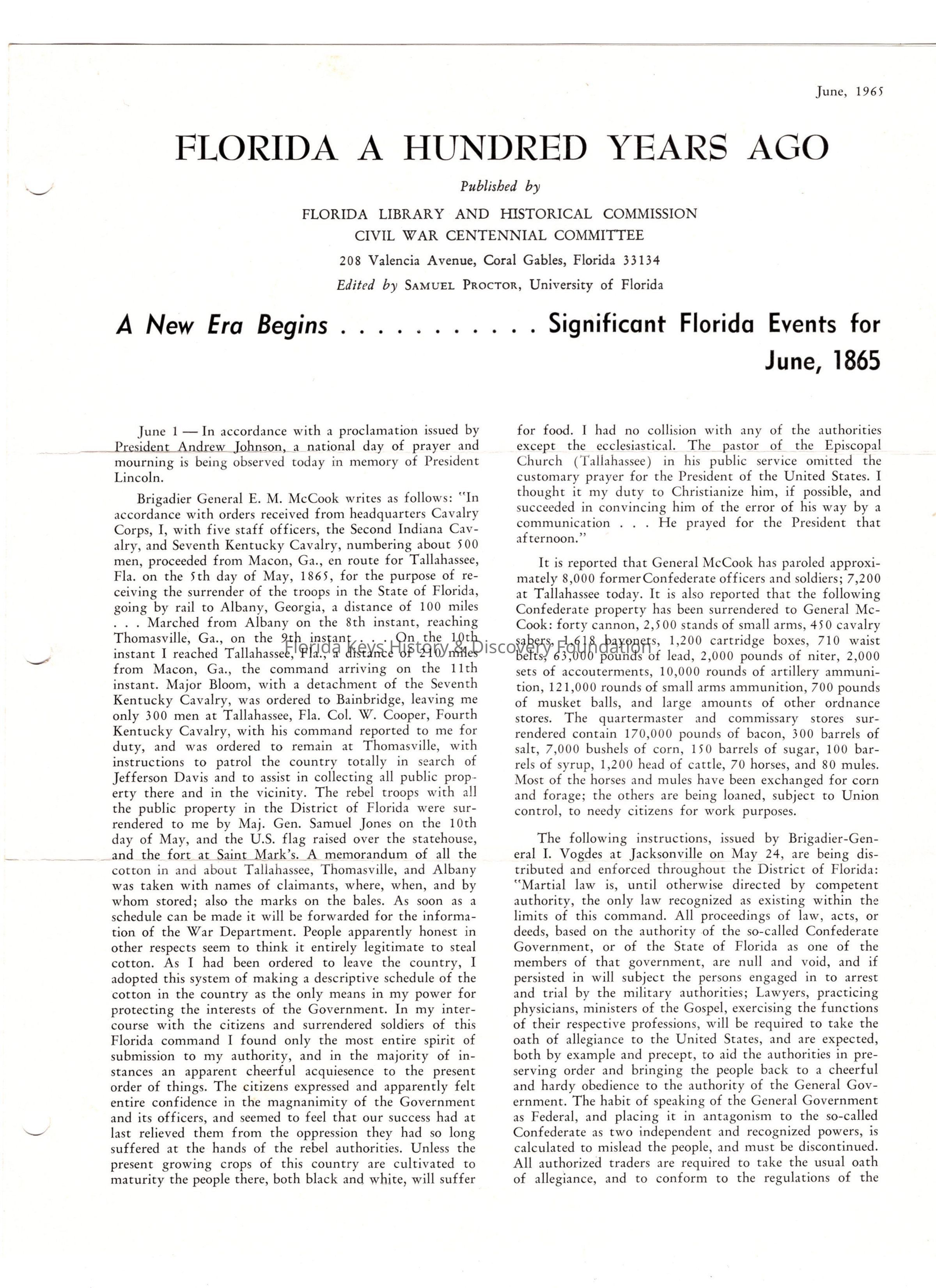 Publications with information about significant events from Florida 1960-1965Cataloged By