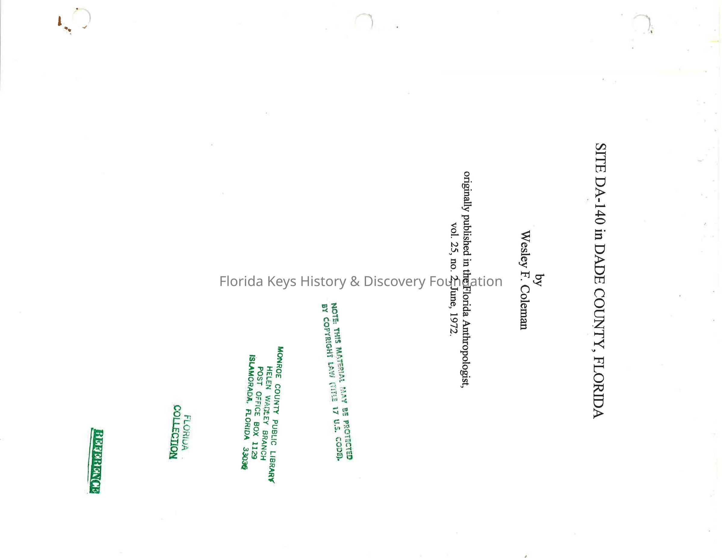 Site DA-140 in Dade County, Florida by Wesley F. ColemanEntry/Object ID