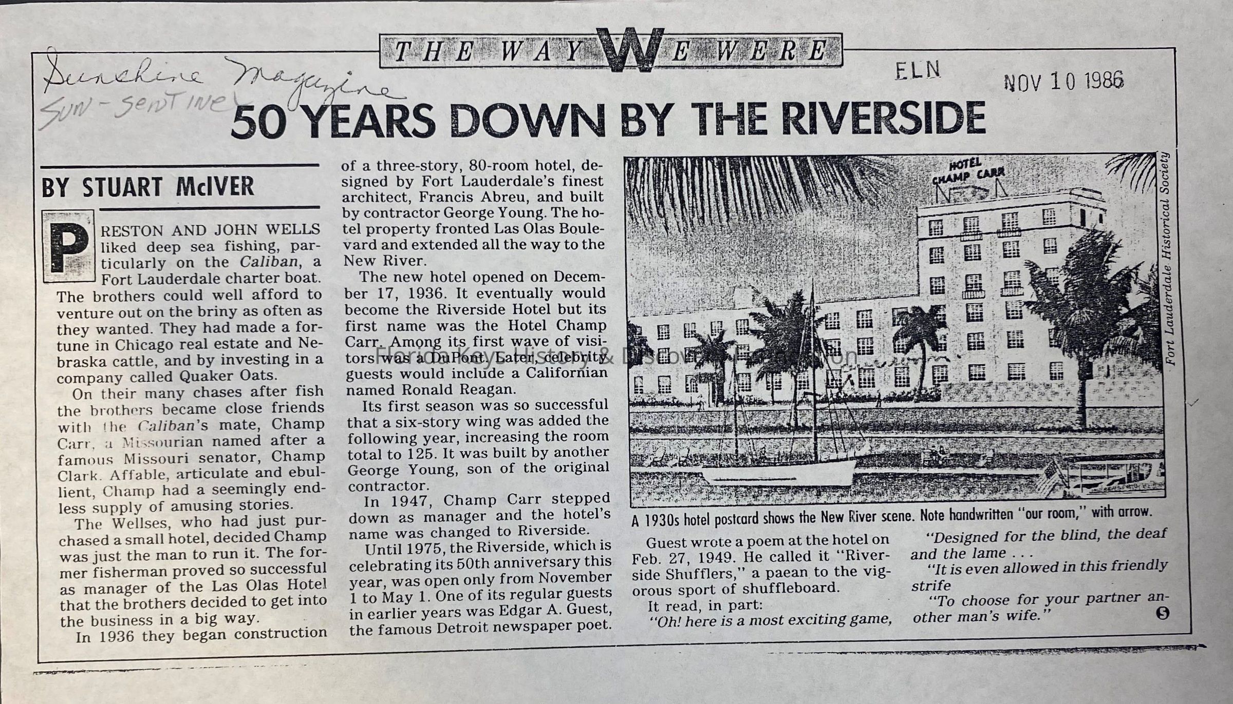 Photographs, maps, and historical documents related to the Riverside Hotel in Fort LauderdaleCollection