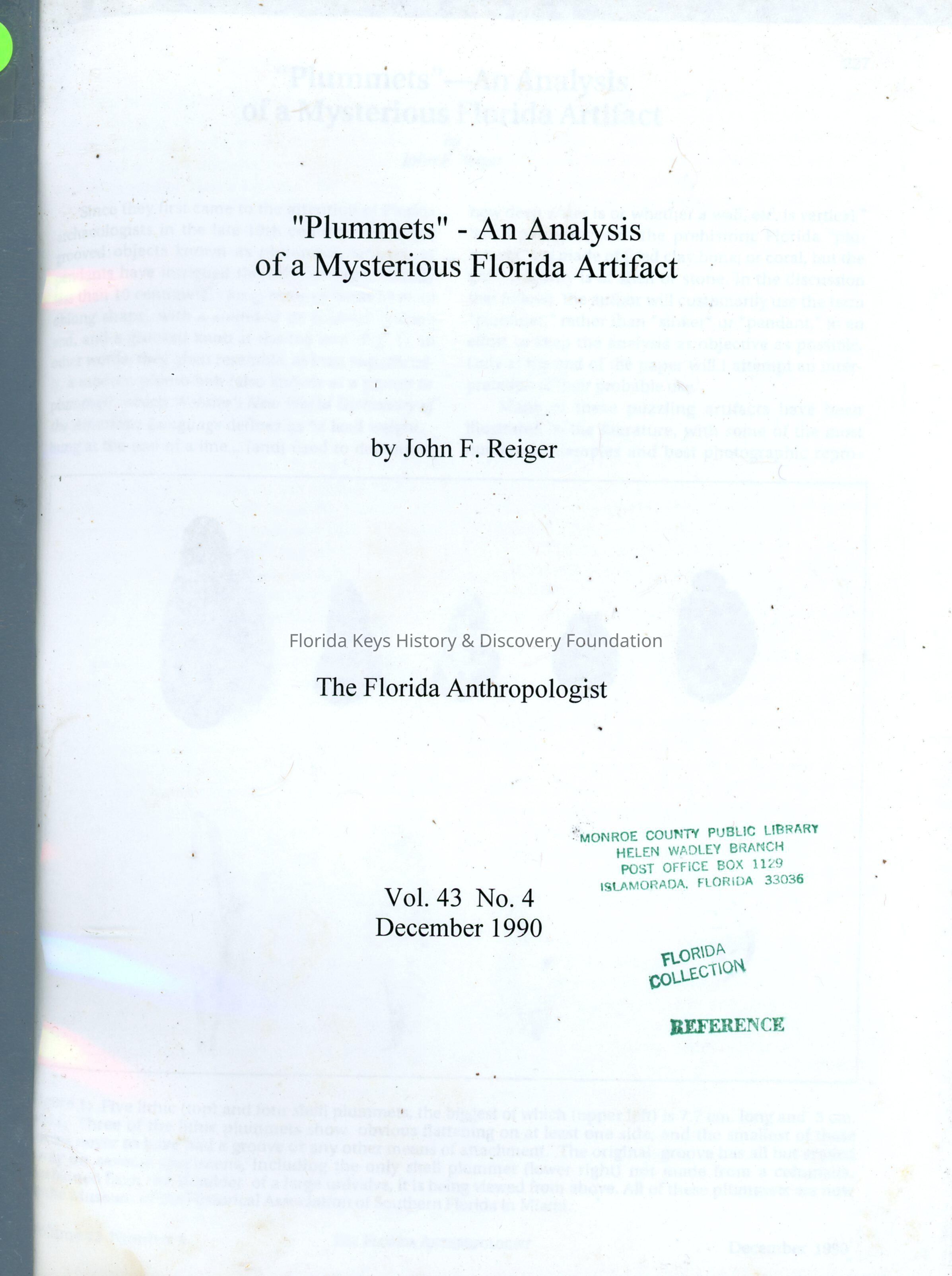 "Plummets" -- An Analysis of a Mysterious Florida ArtifactEntry/Object ID