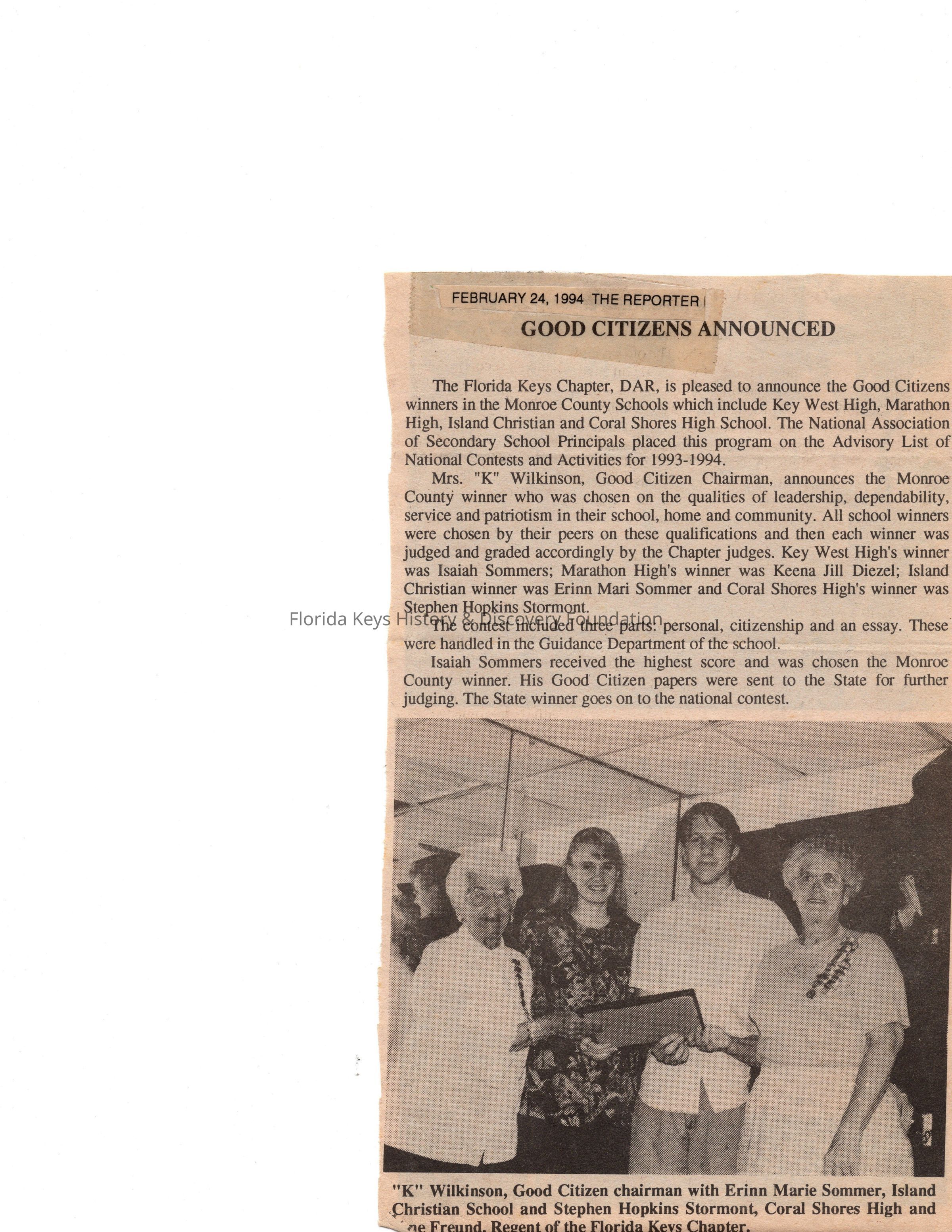 Good Citizen of the Florida Keys Chapter for 1994, Monroe County, Isaiah SommersCollection
