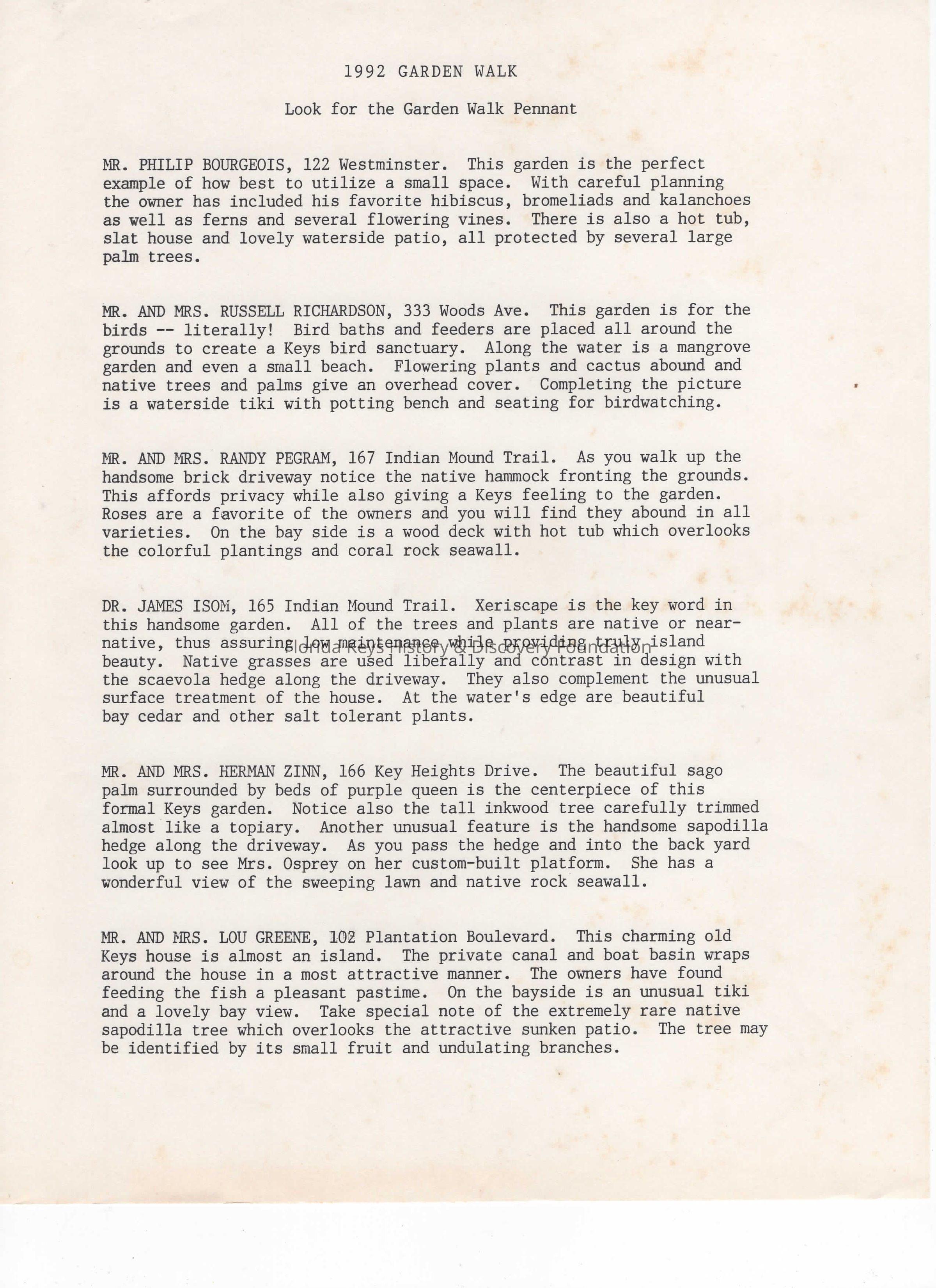 GCUK, Tour, Garden Walk, 1990s, Upper Keys Garden Club, 1992Context