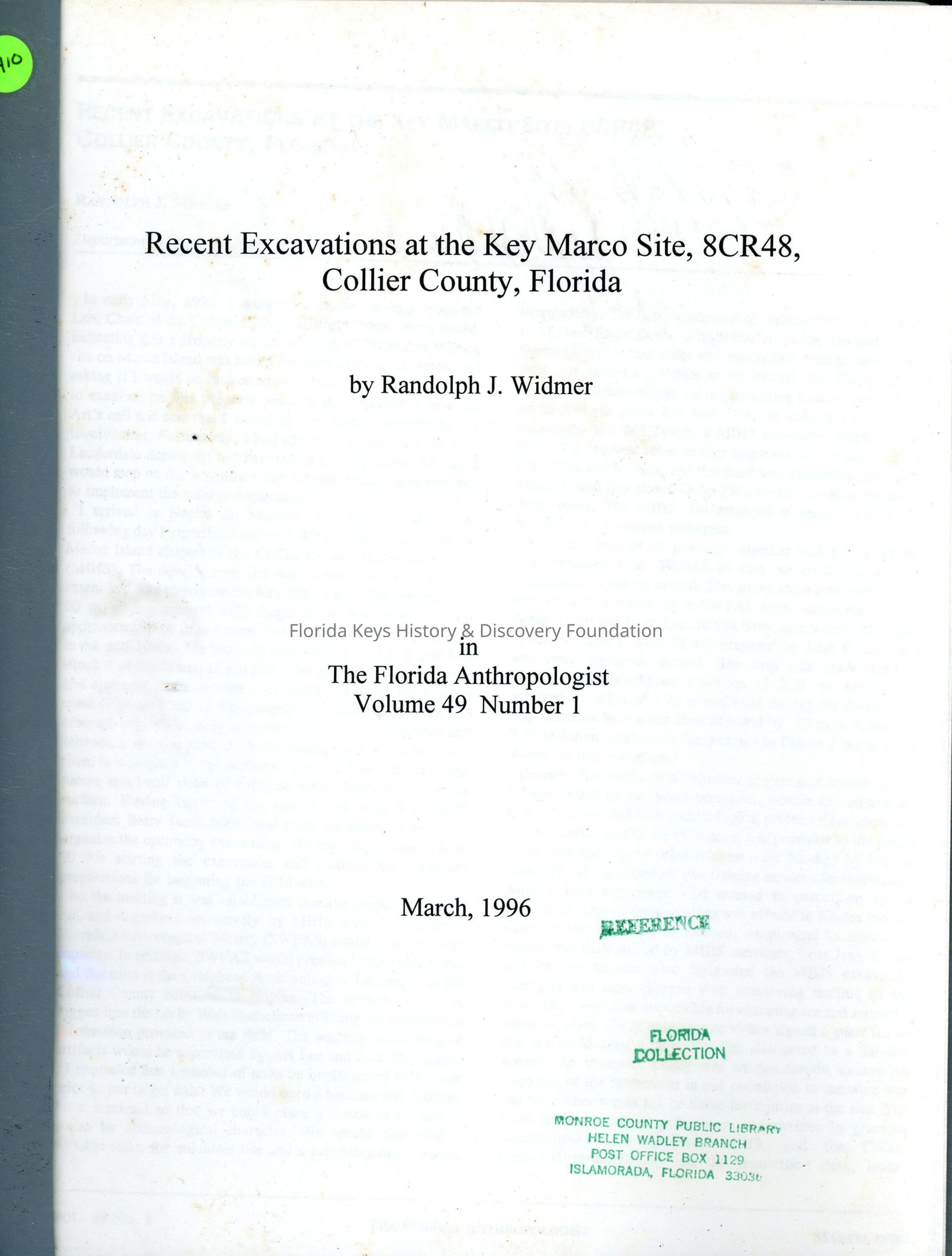 Recent Excavations at the Key Marco Site, 8CR48, Collier County, FloridaEntry/Object ID