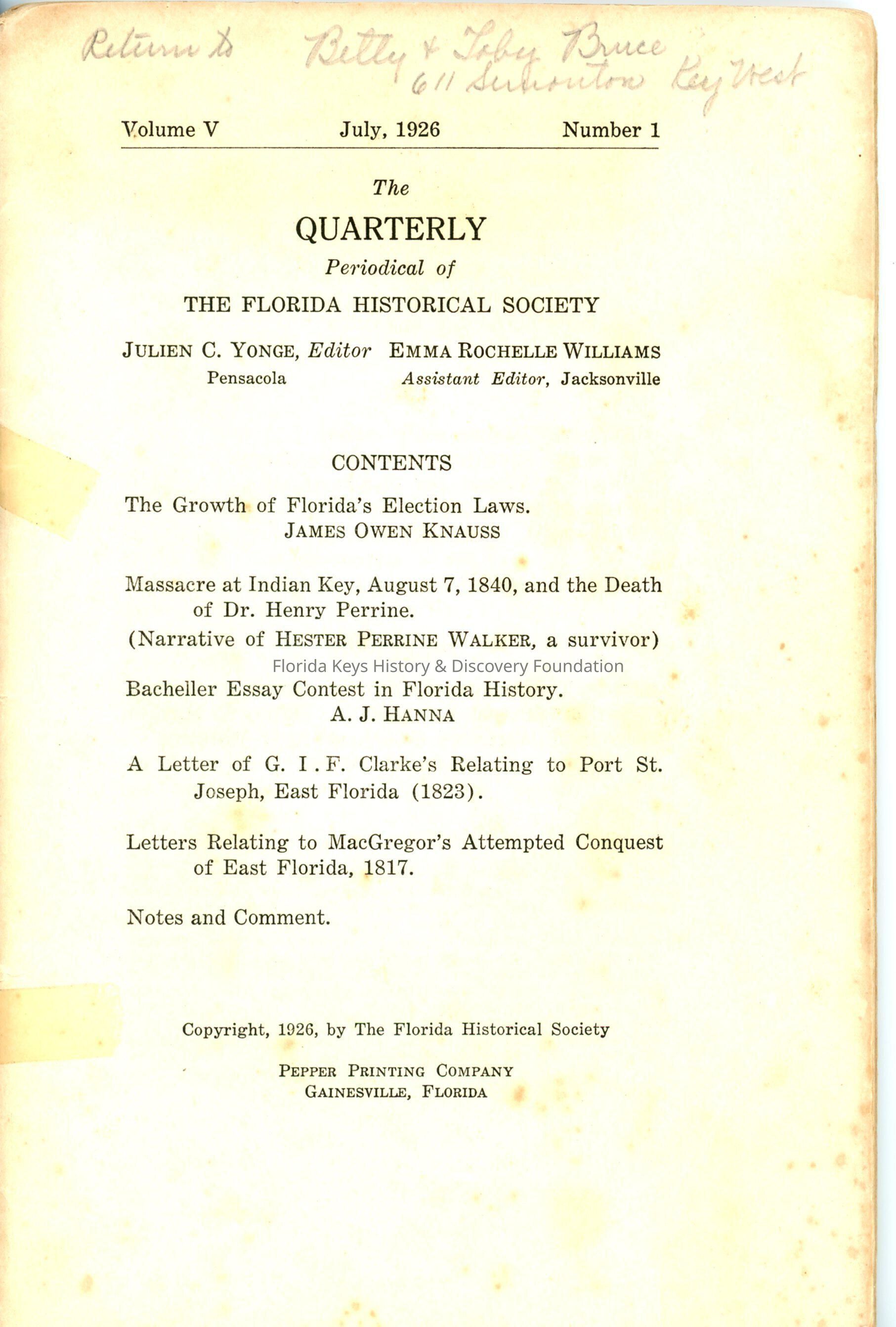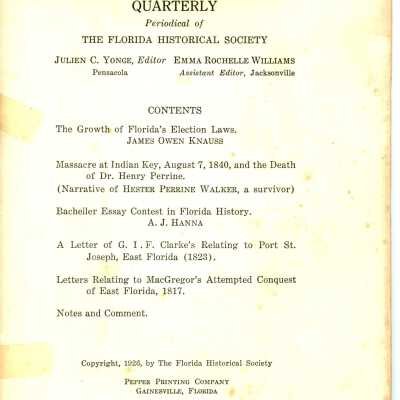The Florida Historical Quarterly Vol.V No.1 (July, 1926)Entry/Object ID