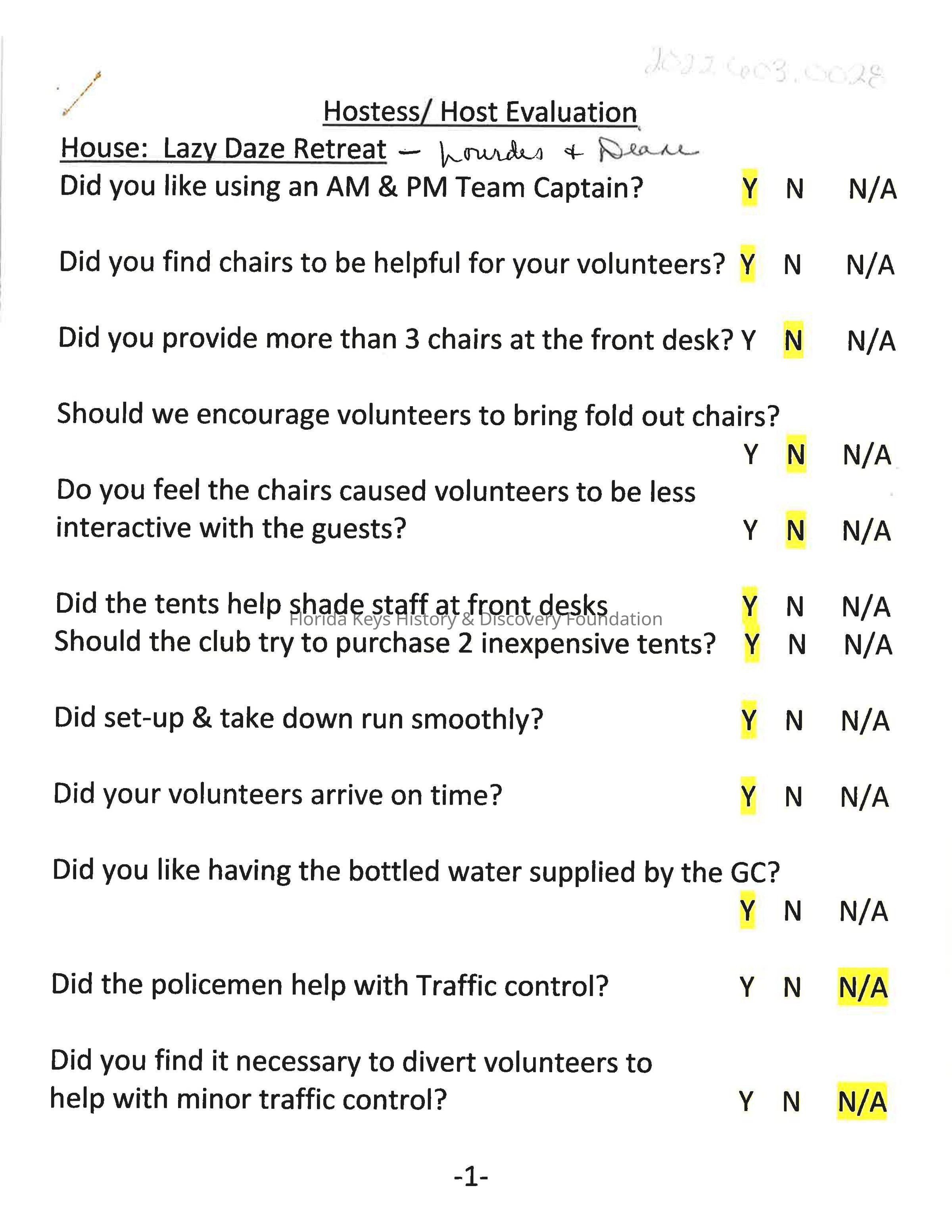 Hostess/Host Evaluation from House Lazy Daze Retreat.