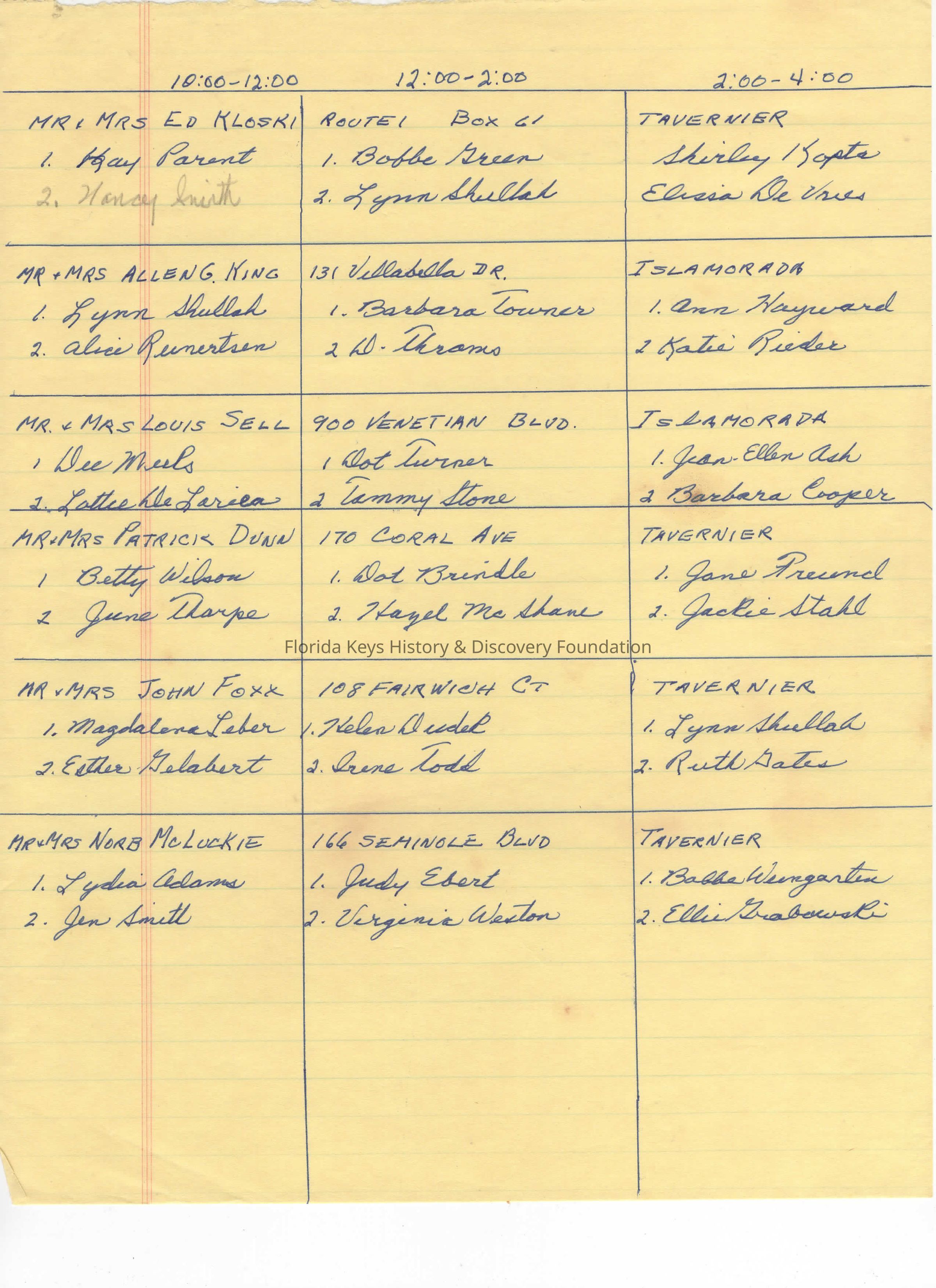 This is a schedule broken down by the address of various members, many of these members are involved in the garden walkCollection