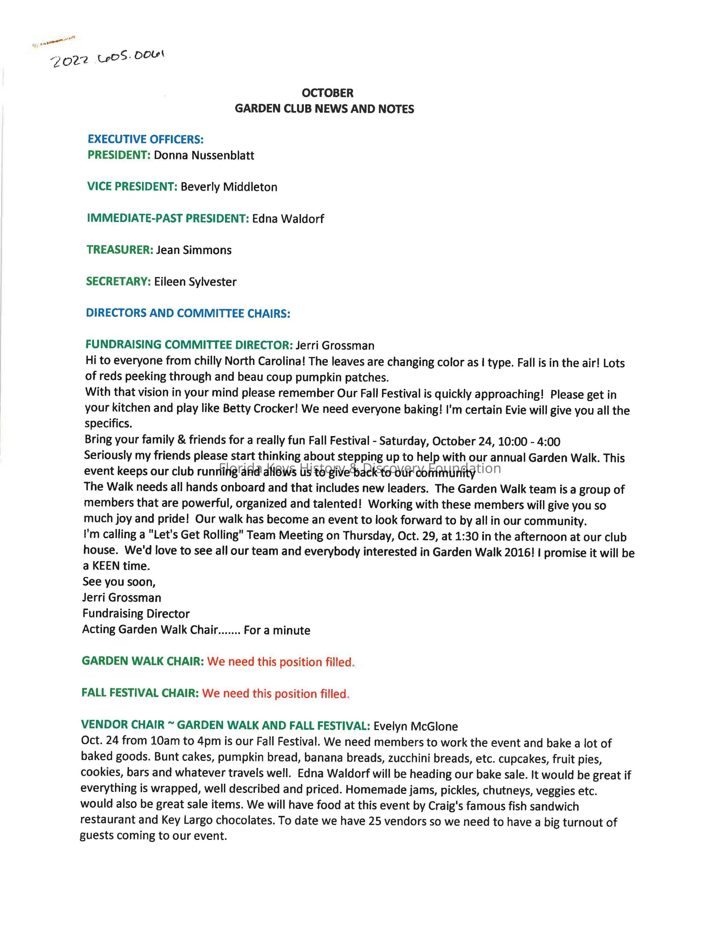 October 2015 News and Notes 3 pages 8.5 x 11 inches, printed on white paper
