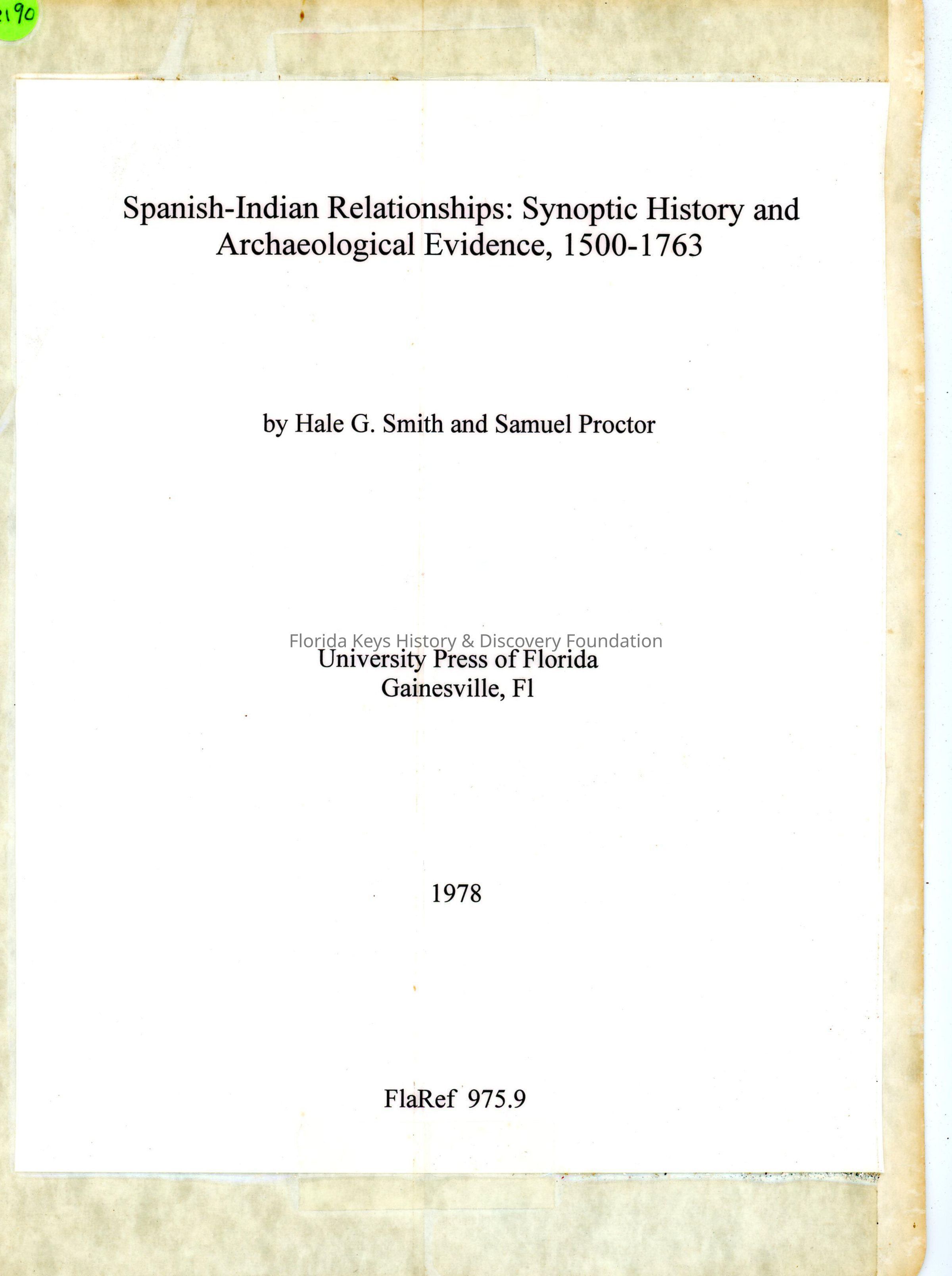 Spanish-Indian Relationships: Synoptic History and Archaeological Evidence, 1500-1863Entry/Object ID