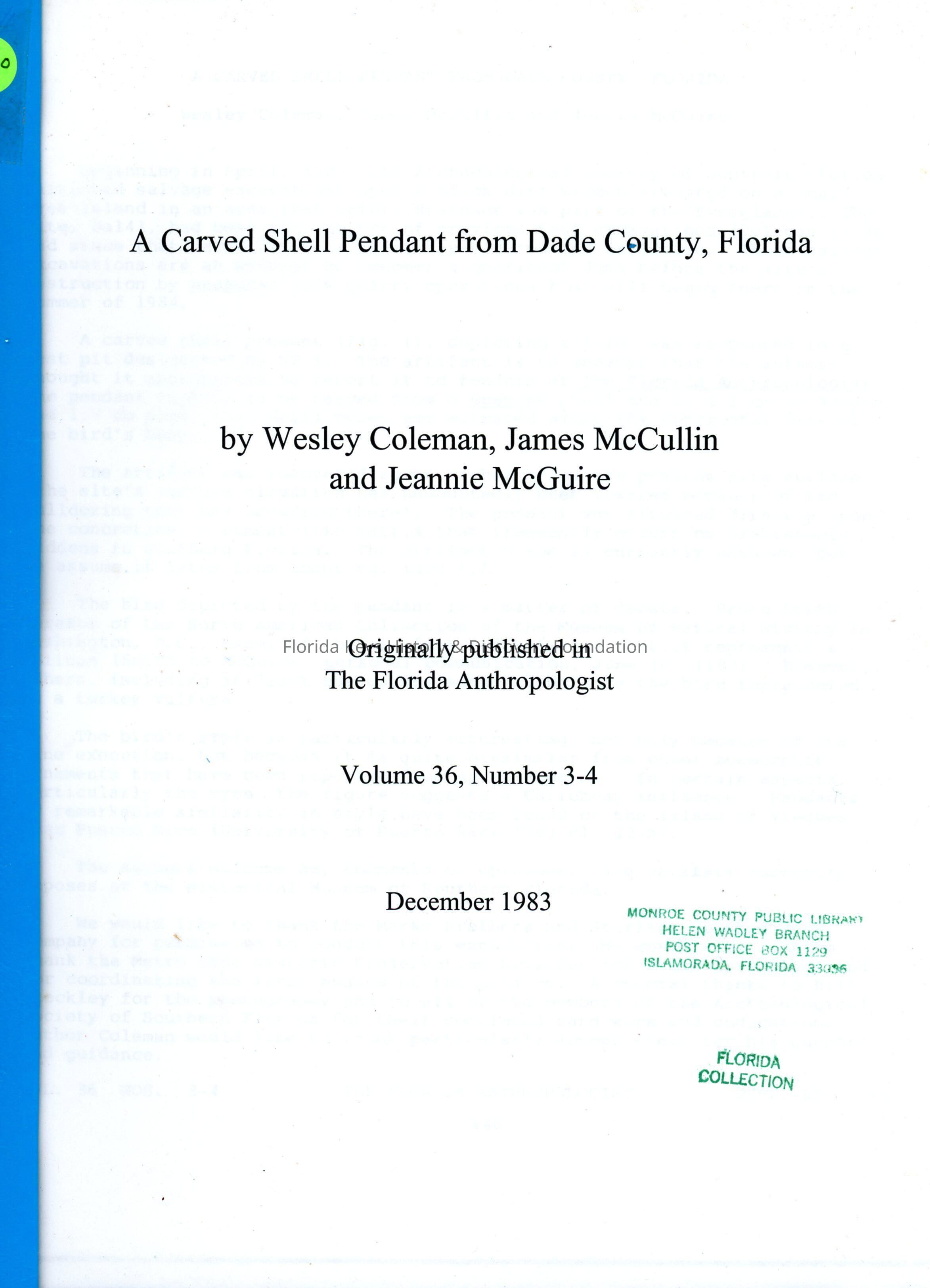 A Carved Shell Pendant from Dade County, FloridaEntry/Object ID