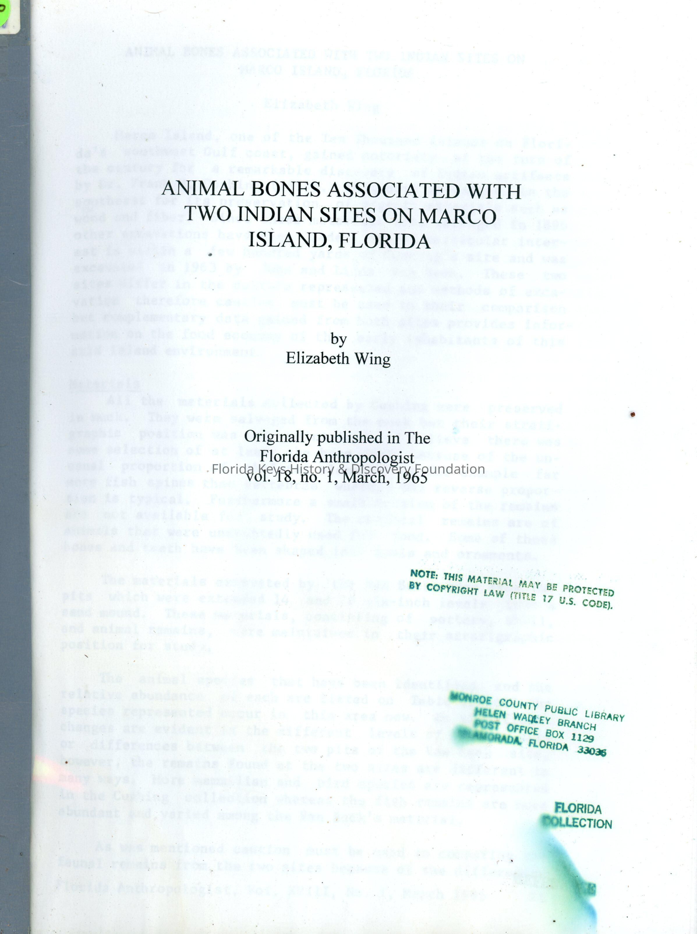 Animal Bones Associated With Two Indian Sites On Marco Island, FloridaEntry/Object ID