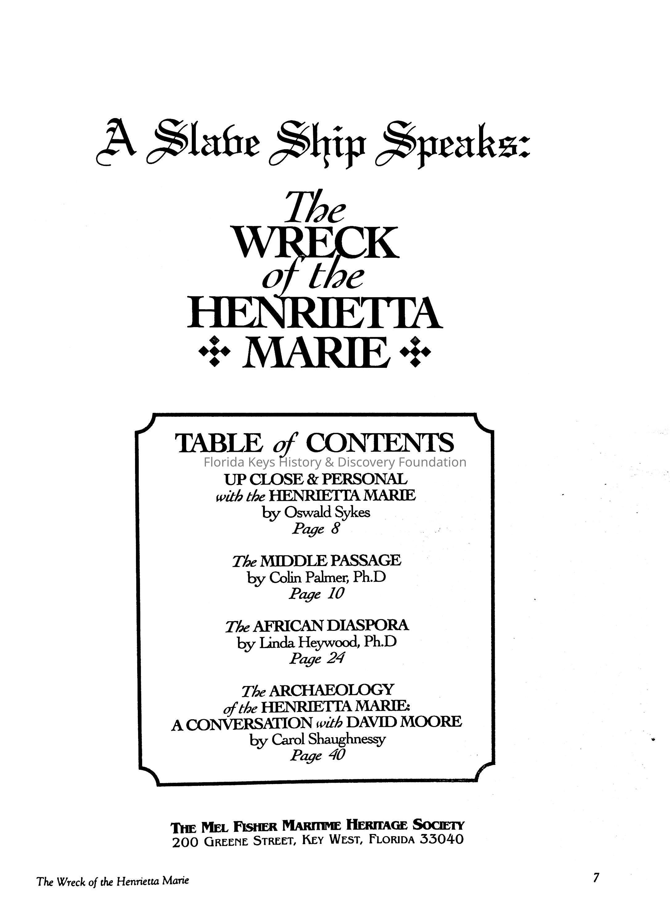 The Wreck of the Henrietta MarieEntry/Object ID