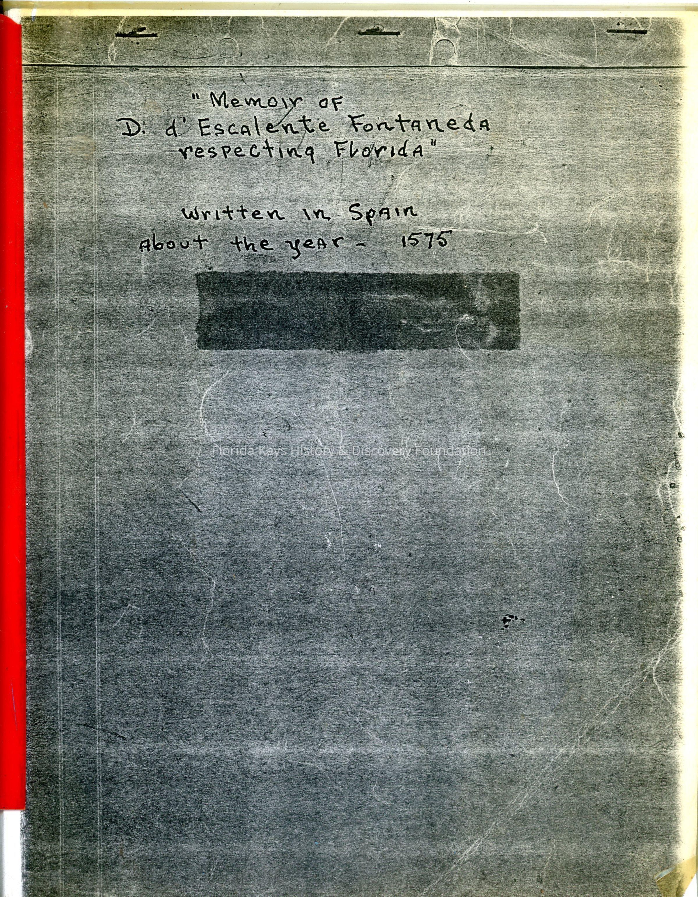 Memoir of D. d'Escalante Fontaneda Respecting FloridaEntry/Object ID