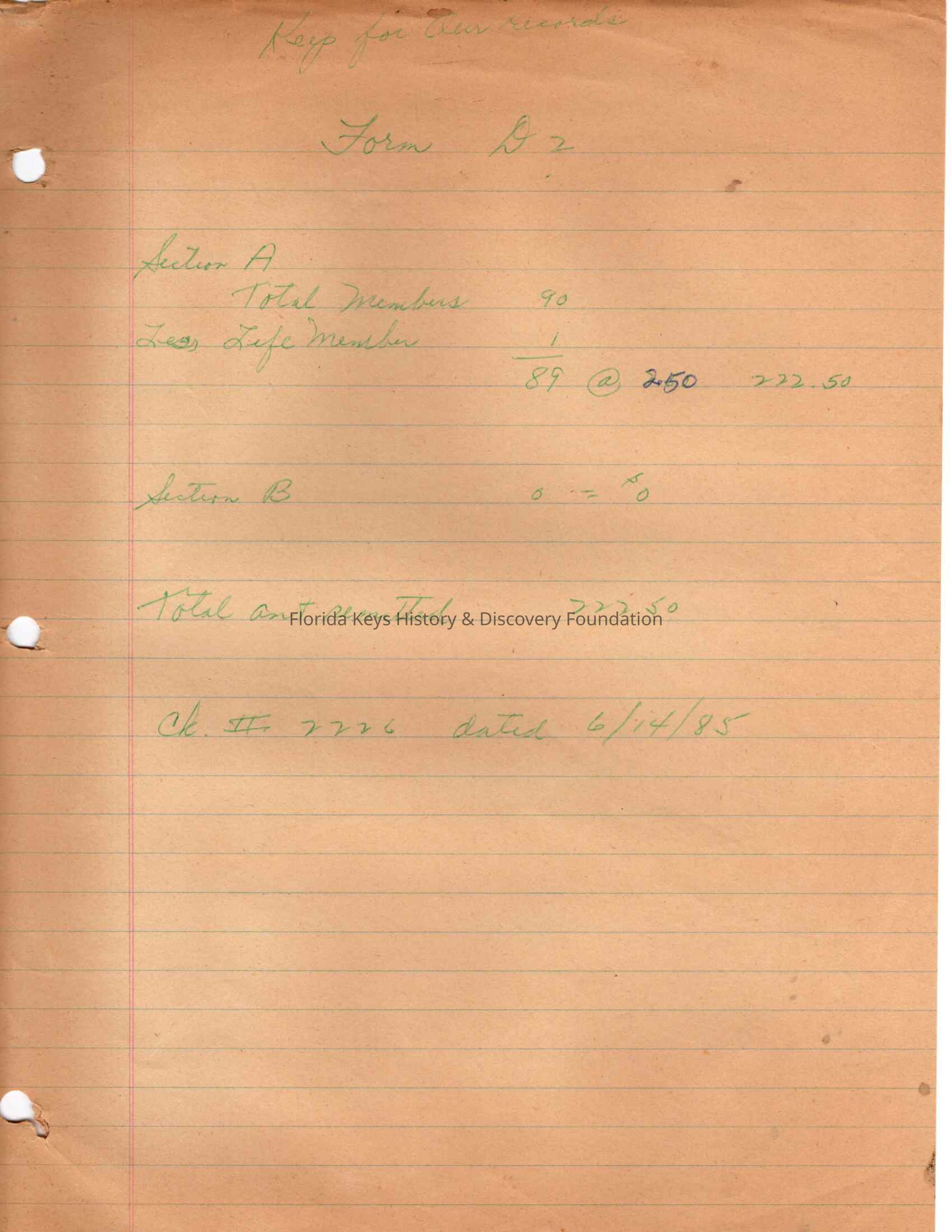 CK. # 2226 dated 6/14/85Created By