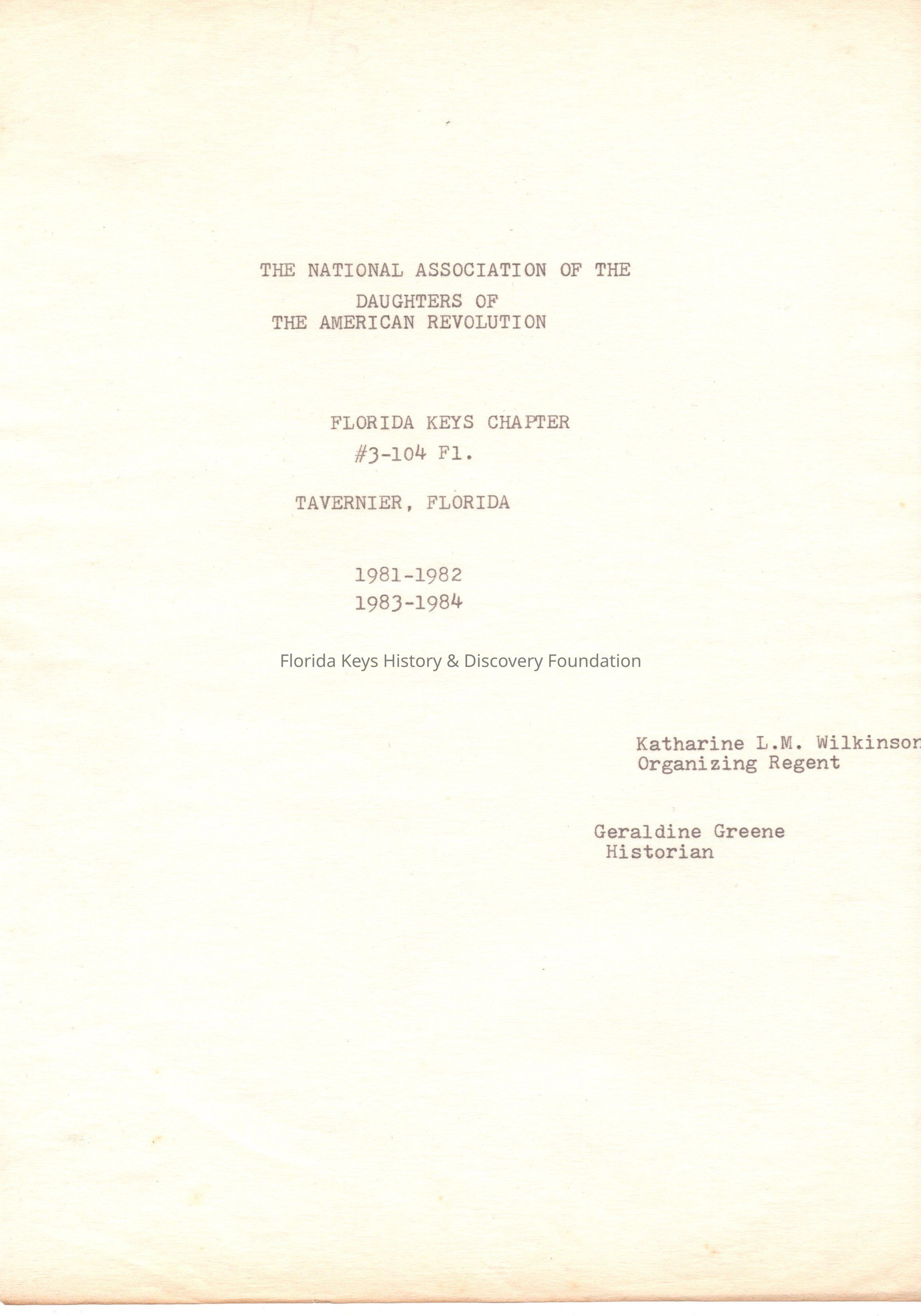 1983, Tavernier, Daughters of the American Revolution, 1984Scope and Content