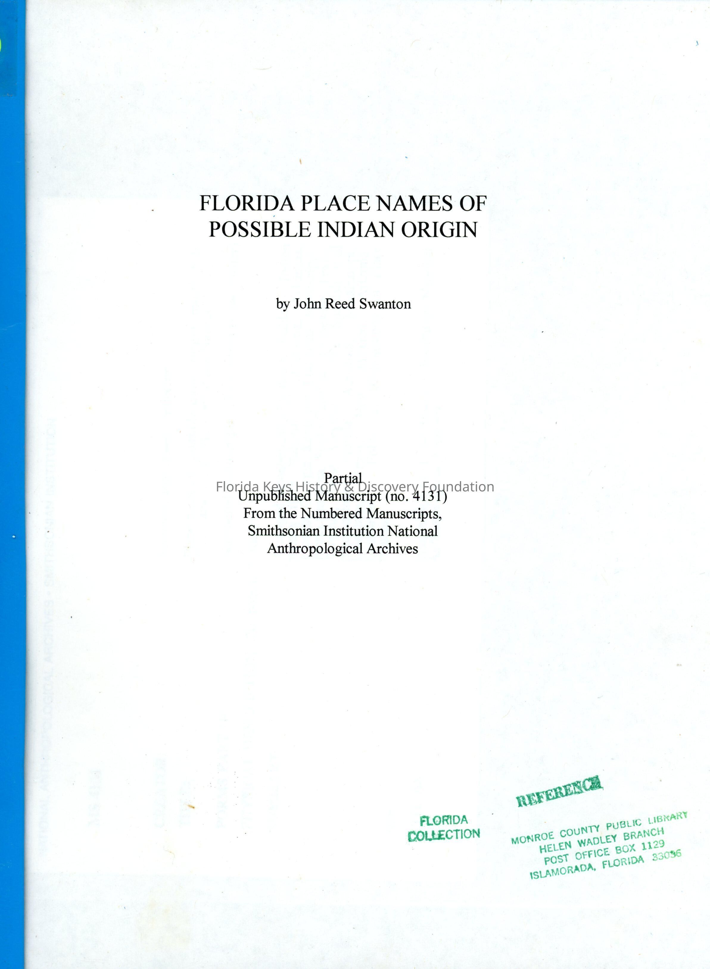 Florida Place Names of Possible Indian OriginEntry/Object ID