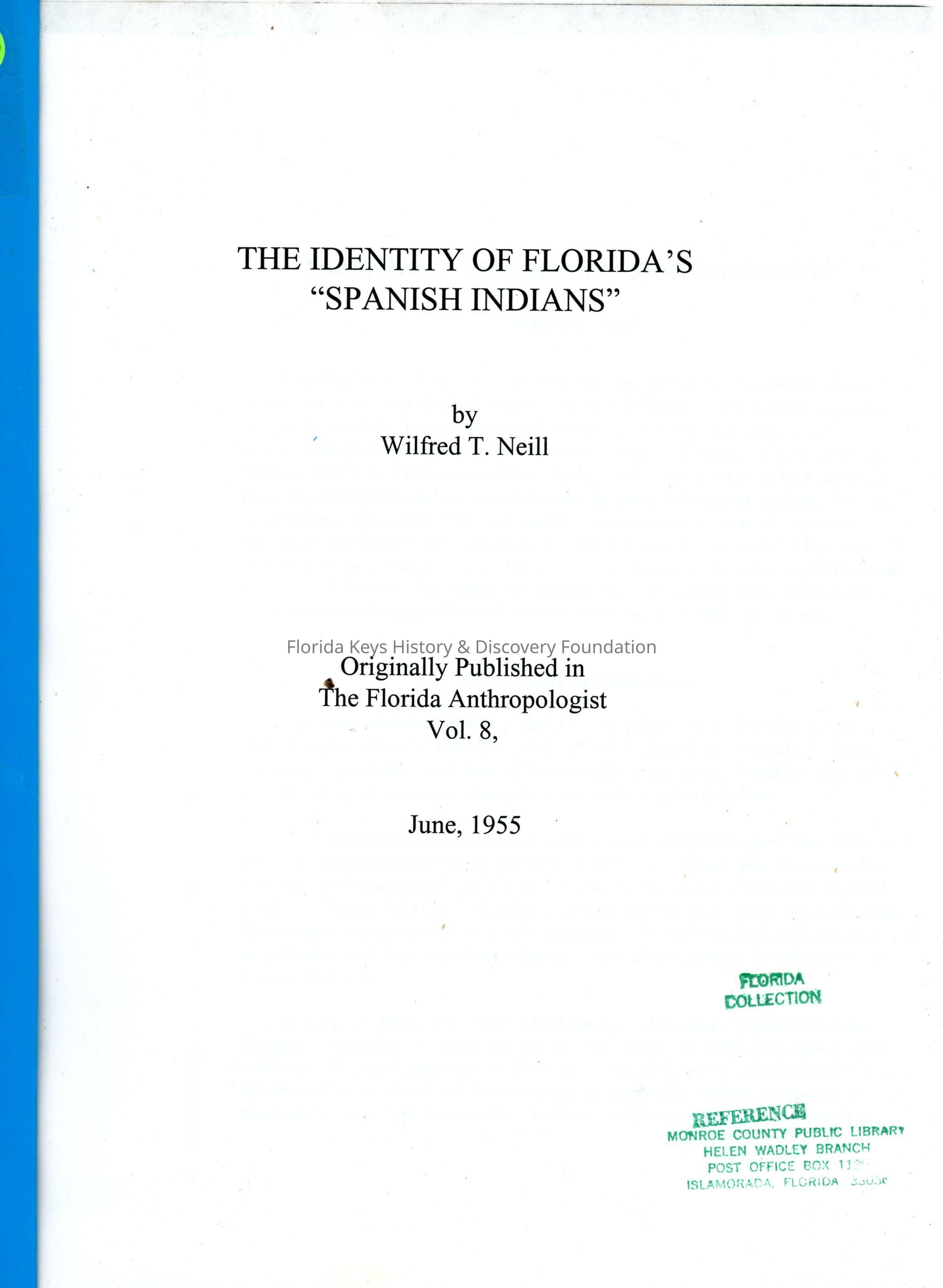 The Identity of Florida's "Spanish Indians"Entry/Object ID