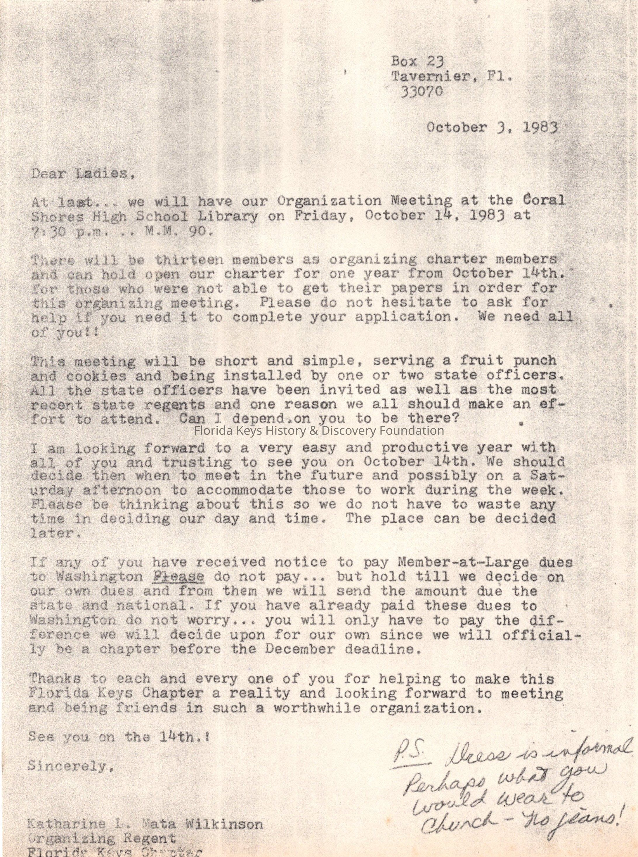 1980s, DAR, Daughters of the American Revolution, Coral Shores School, TavernierDescription
