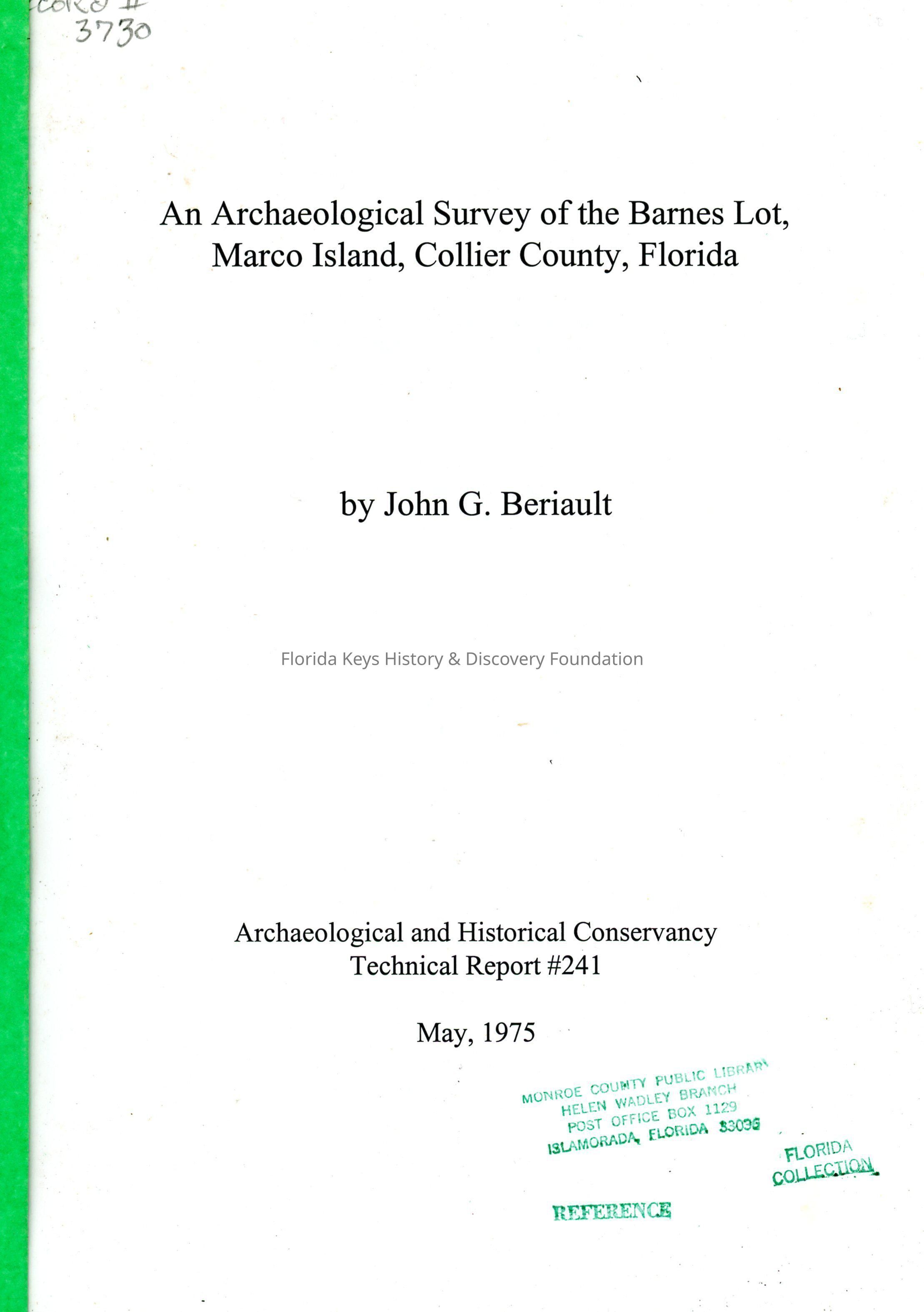 An Archaeological Survey of the Barnes Lot, Marco Island, Collier County, FloridaEntry/Object ID