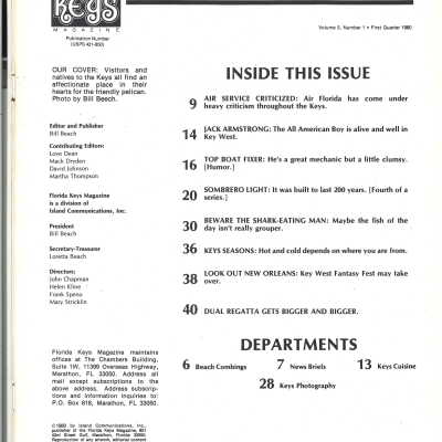 Florida Keys Magazine, First Quarter, 1980Entry/Object ID