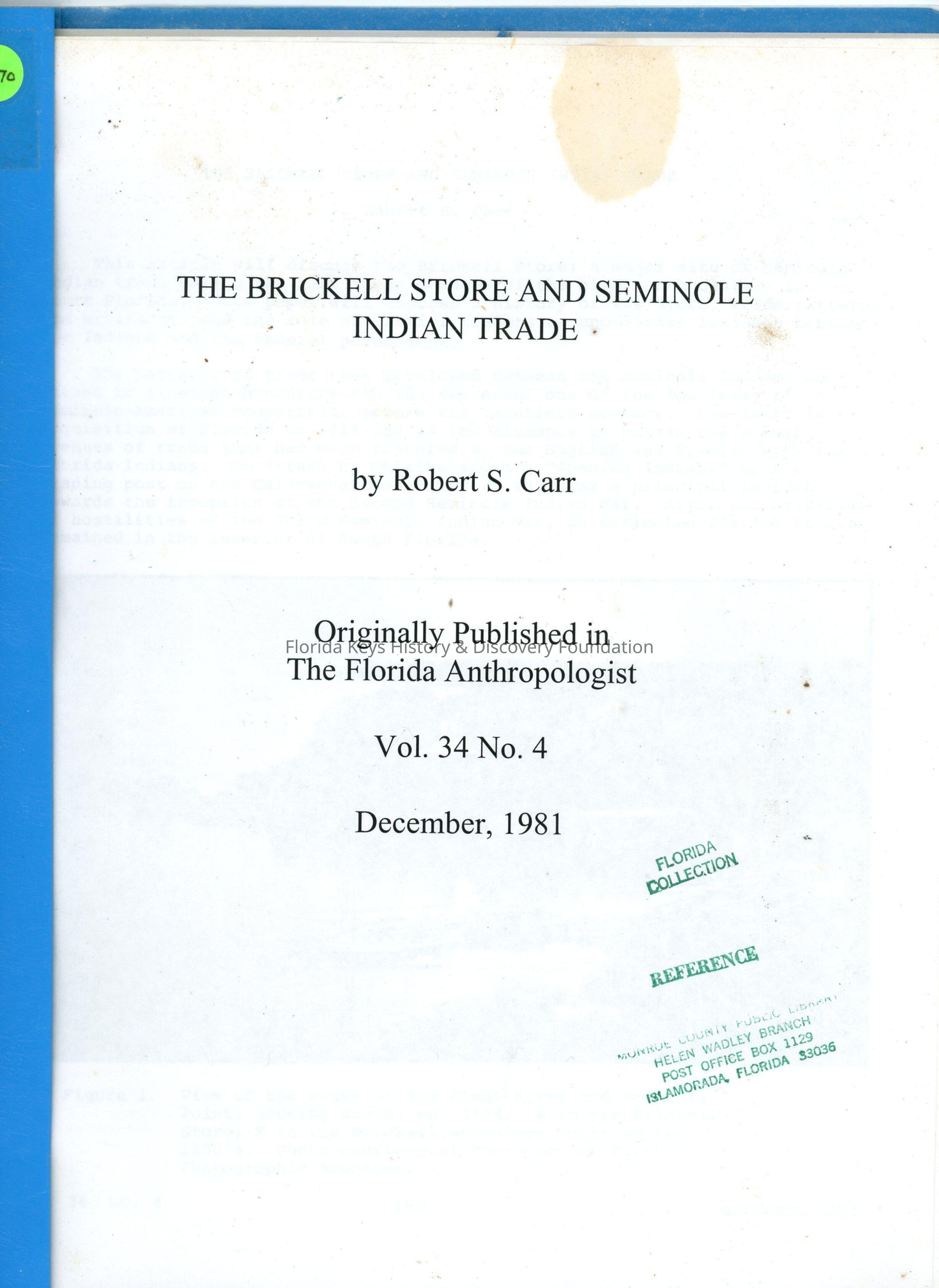 The Brickell Store and Seminole Indian TradeEntry/Object ID