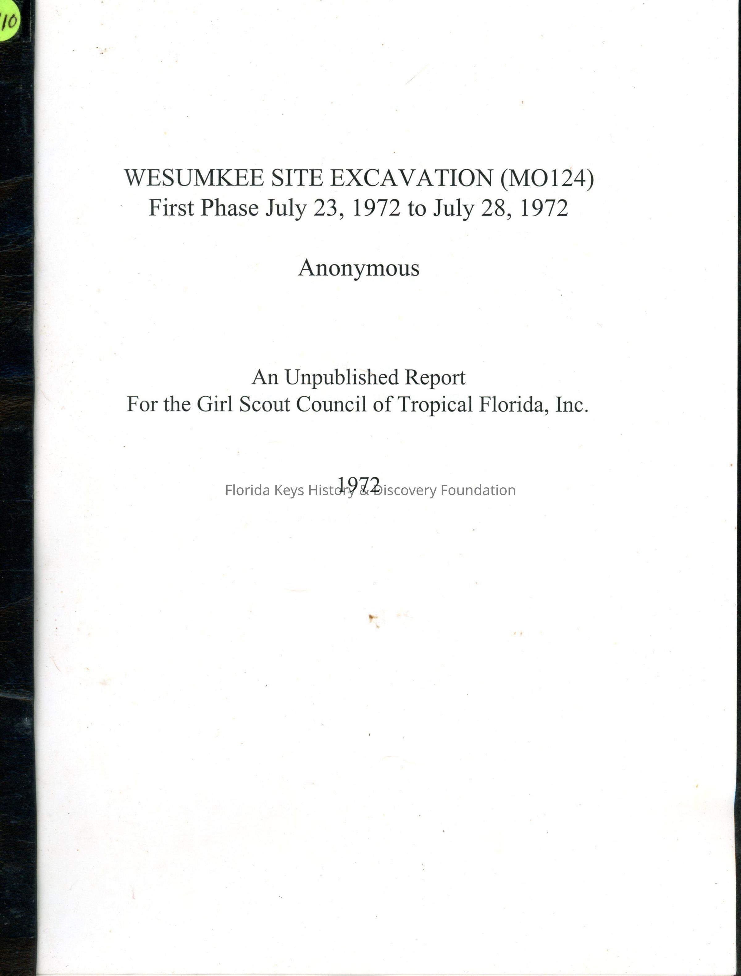 An Unpublished Report For the Girl Scout Council of Tropical Florida, Inc.Collection