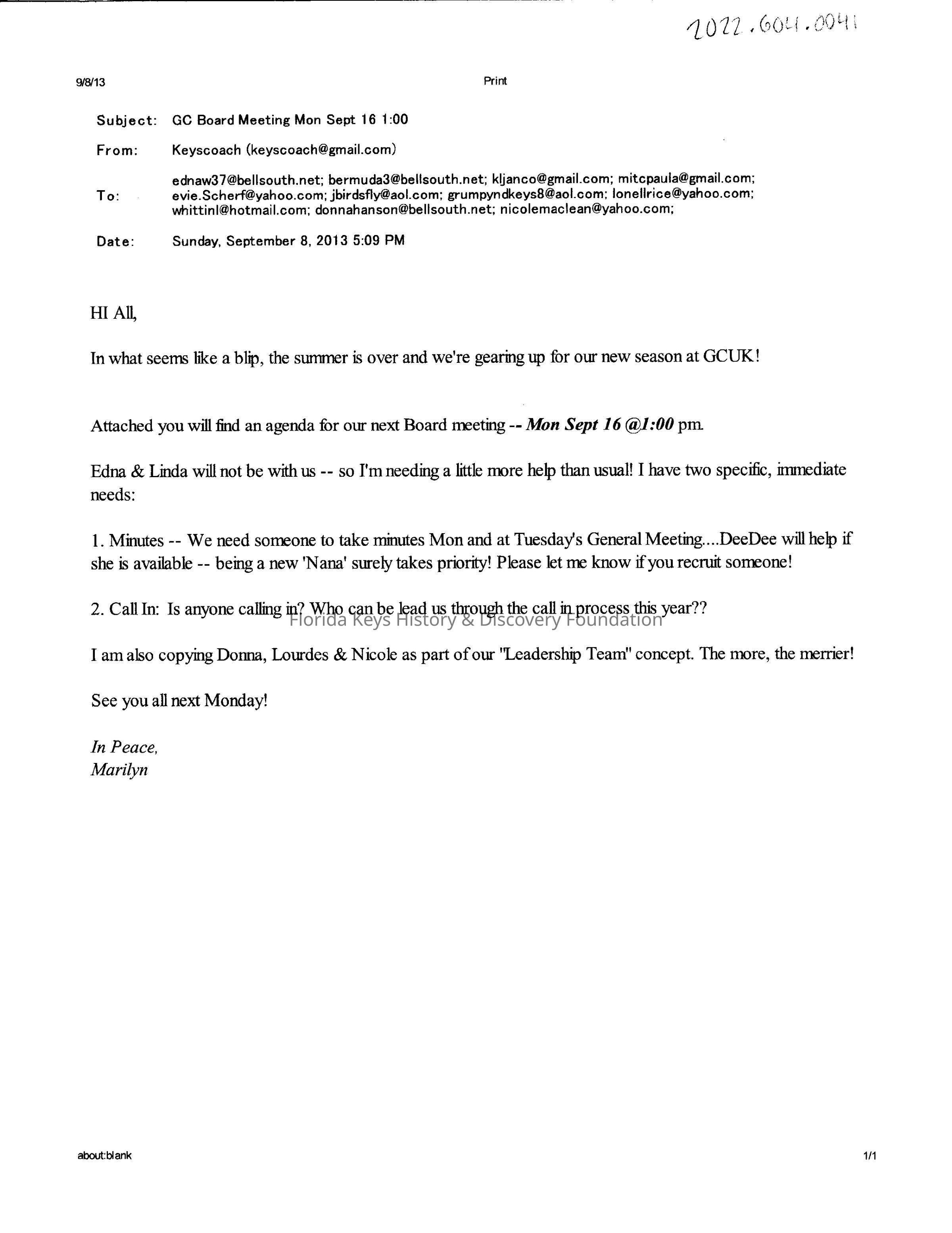 Email of Sept 16 2013 Board Meeting AgendaEntry/Object ID