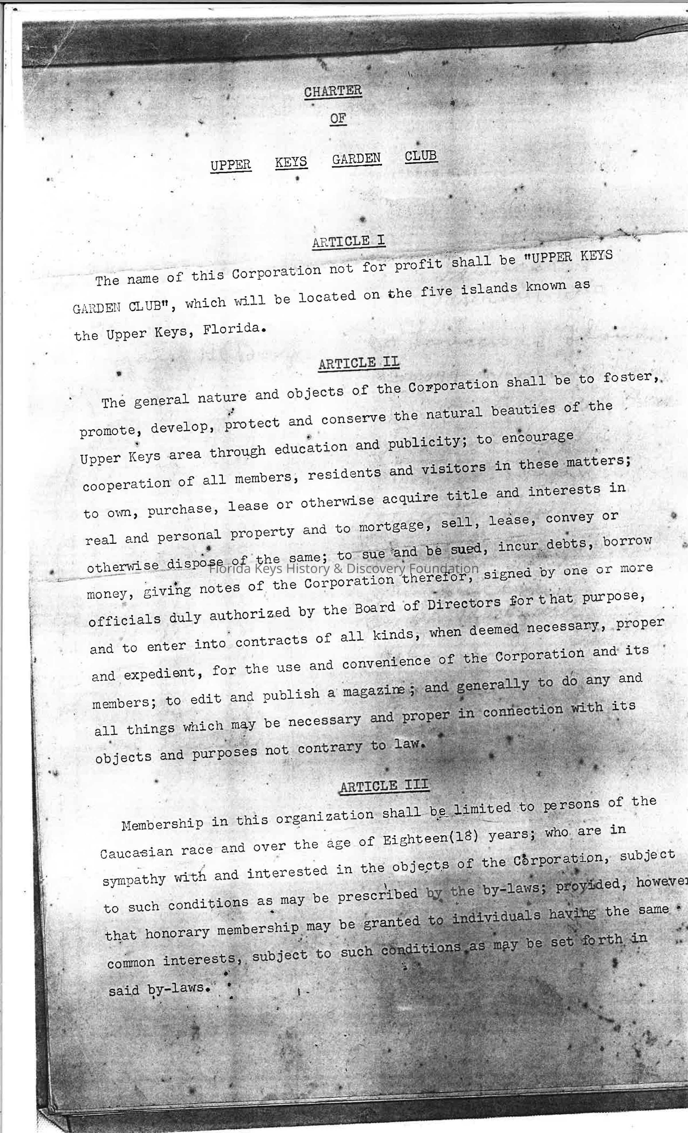 Charter of Upper Keys Garden Club - 1956Entry/Object ID