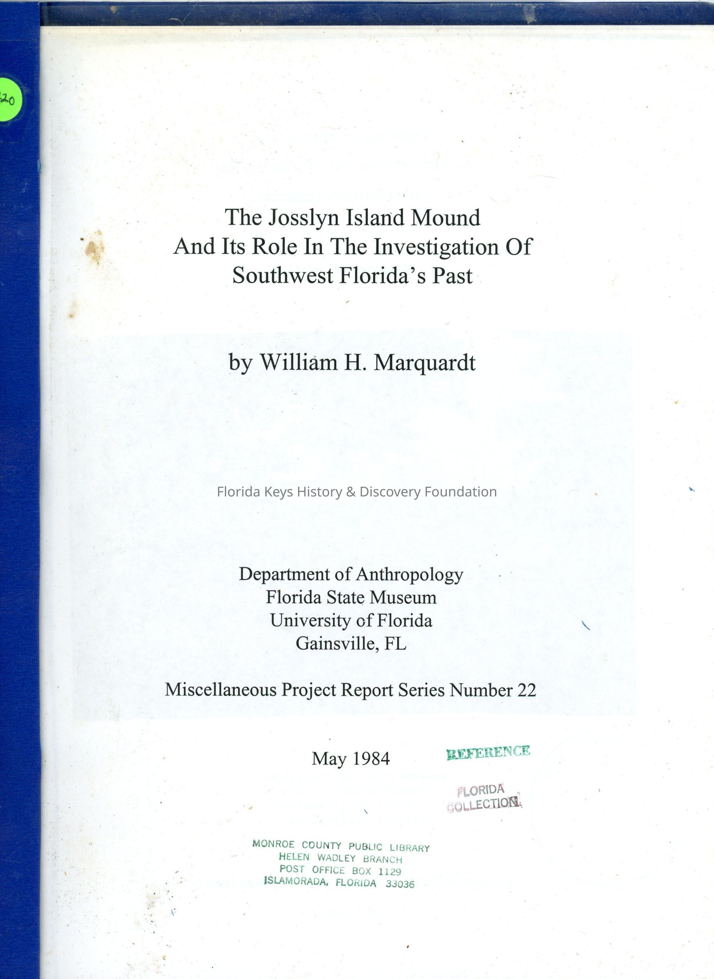 The Josslyn Island Mound and Its Role in the Investigation of Southwest Florida's PastEntry/Object ID