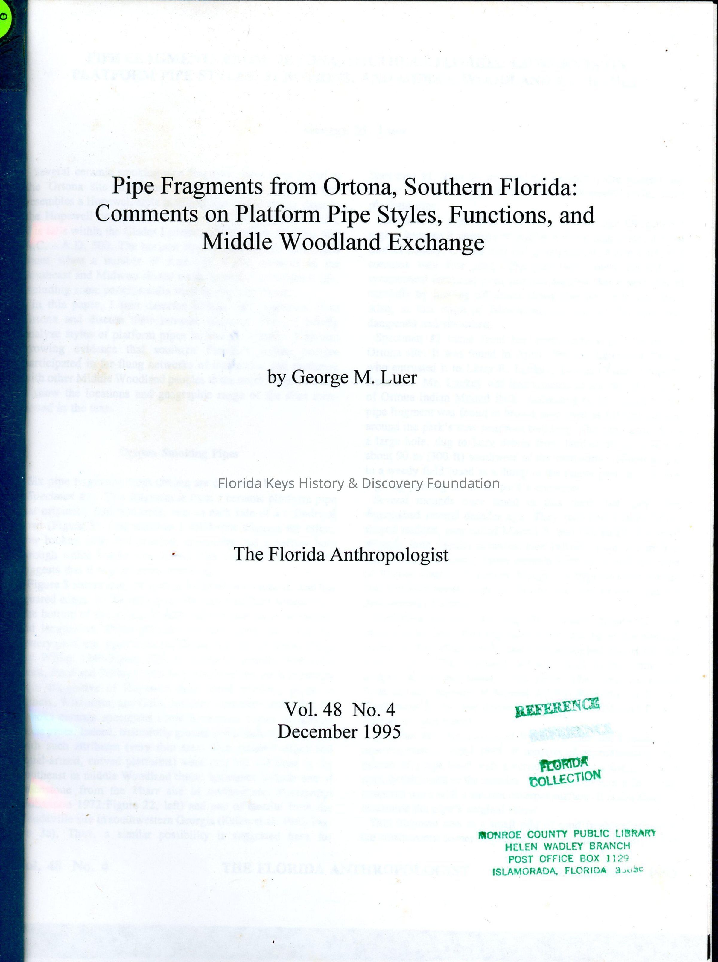 Pipe Fragments from Ortona, Southern Florida: Comments on Platform Pipe Styles, Functions, and Middle Woodland ExchangeEntry/Object ID