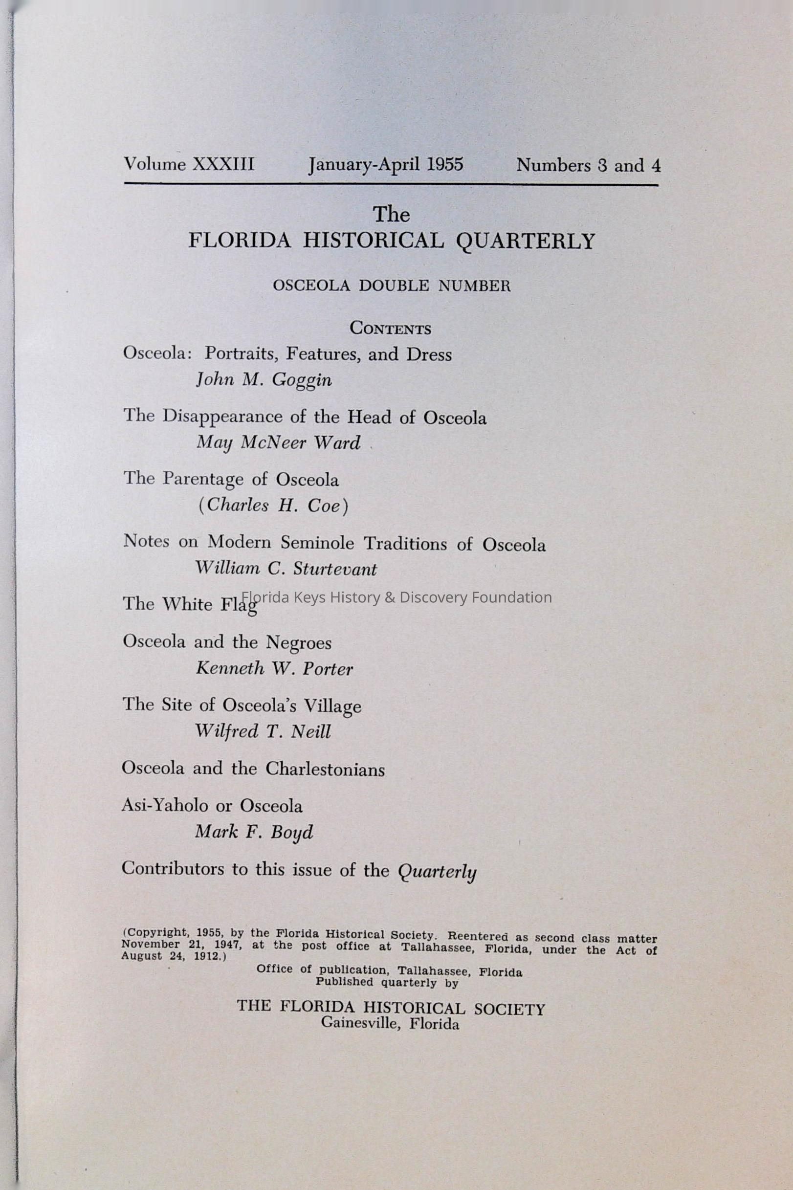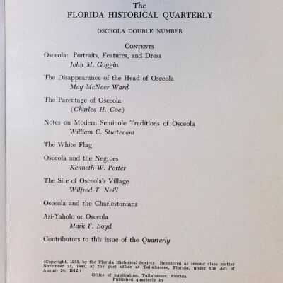 Biographical information about Seminole Chief Osceola published in a double number issue of the Florida Historical QuarterlyCollection