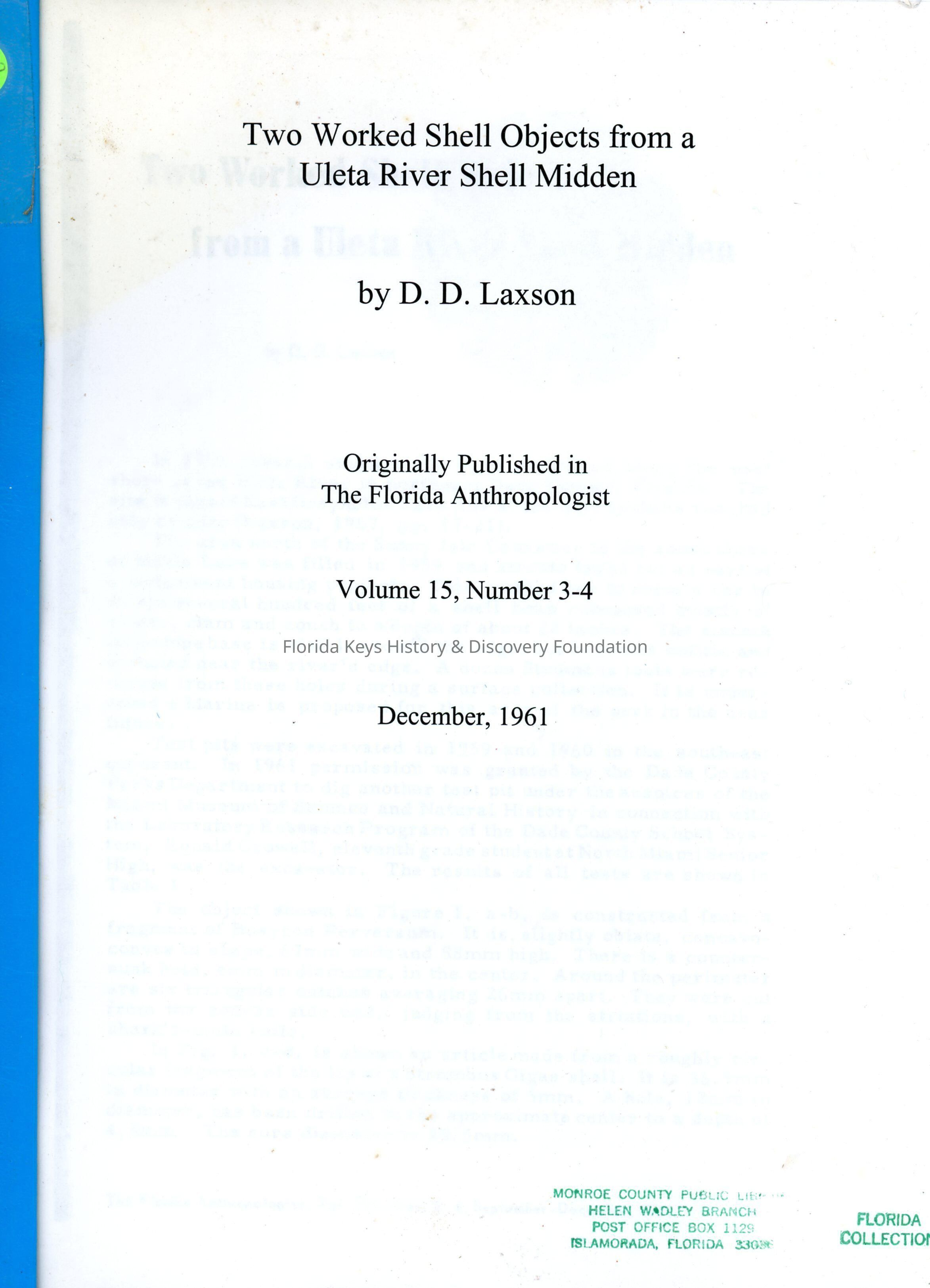 The Florida AnthropologistDate Published