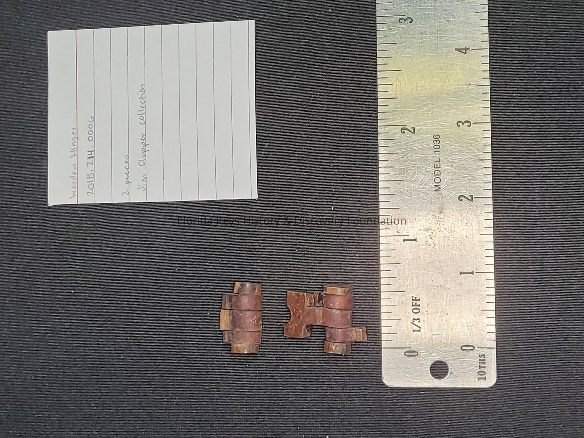 Hinges made of wood - unsure of age or historic site where collected.Context
