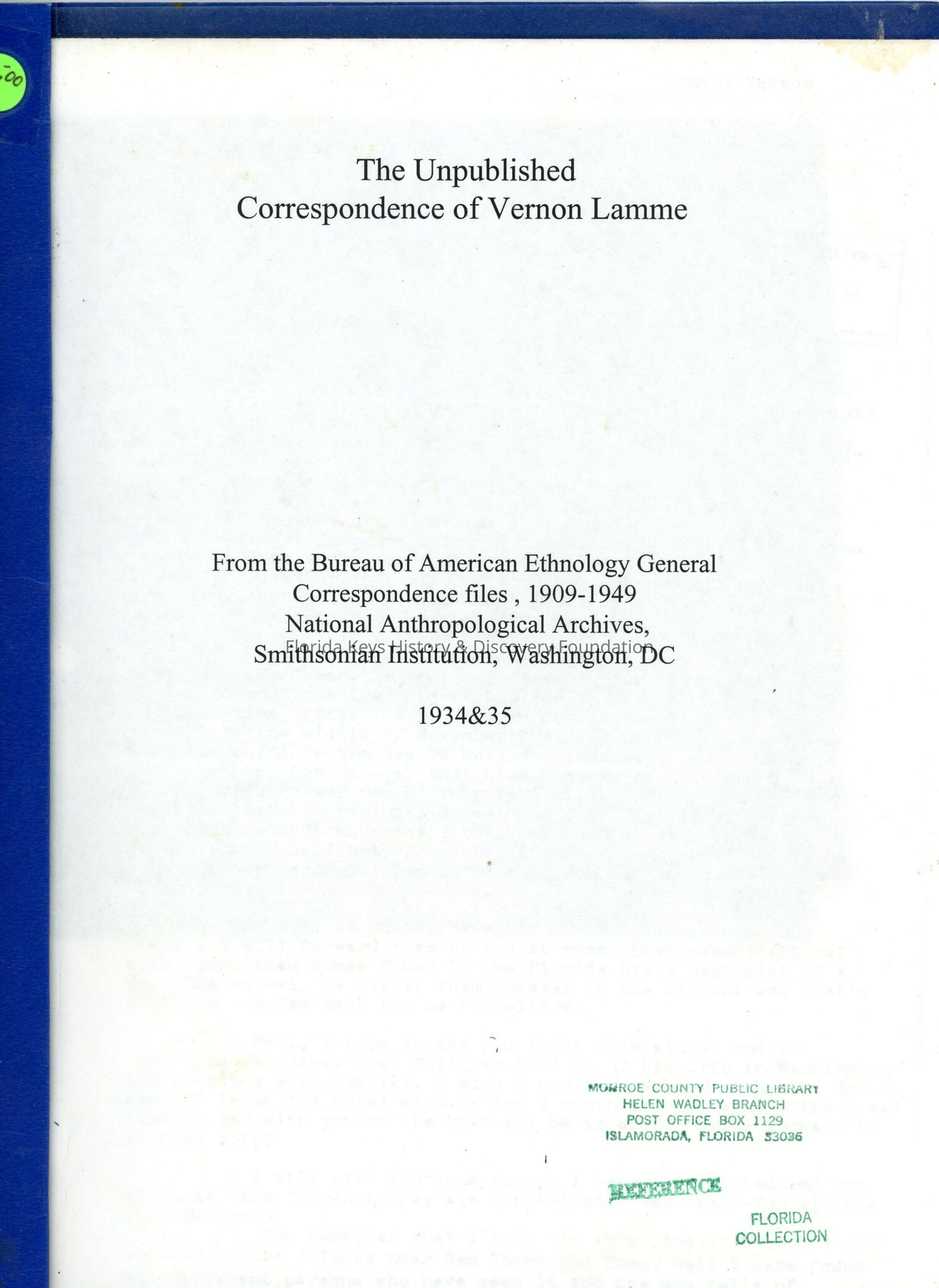 The Unpublished Correspondence of Vernon LammeEntry/Object ID